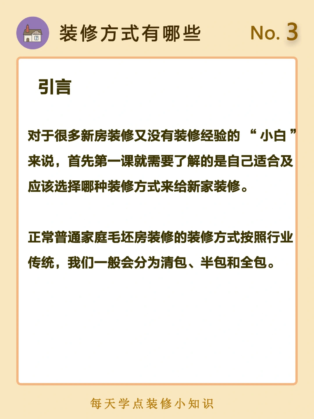 装修 装修干货 装修小知识 装修知识 每日装修科普 全包装修 装修半包 清包