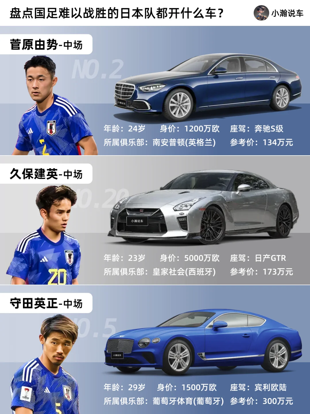 [叹气R]然而,想要真的在足球整体水平上赶超,我们还有很长的路要走。同样是开豪车的黄种人,日本队全队总身价2.86亿欧,32倍于中国队,队中还有着诸多效力于欧洲五大联赛的球星。