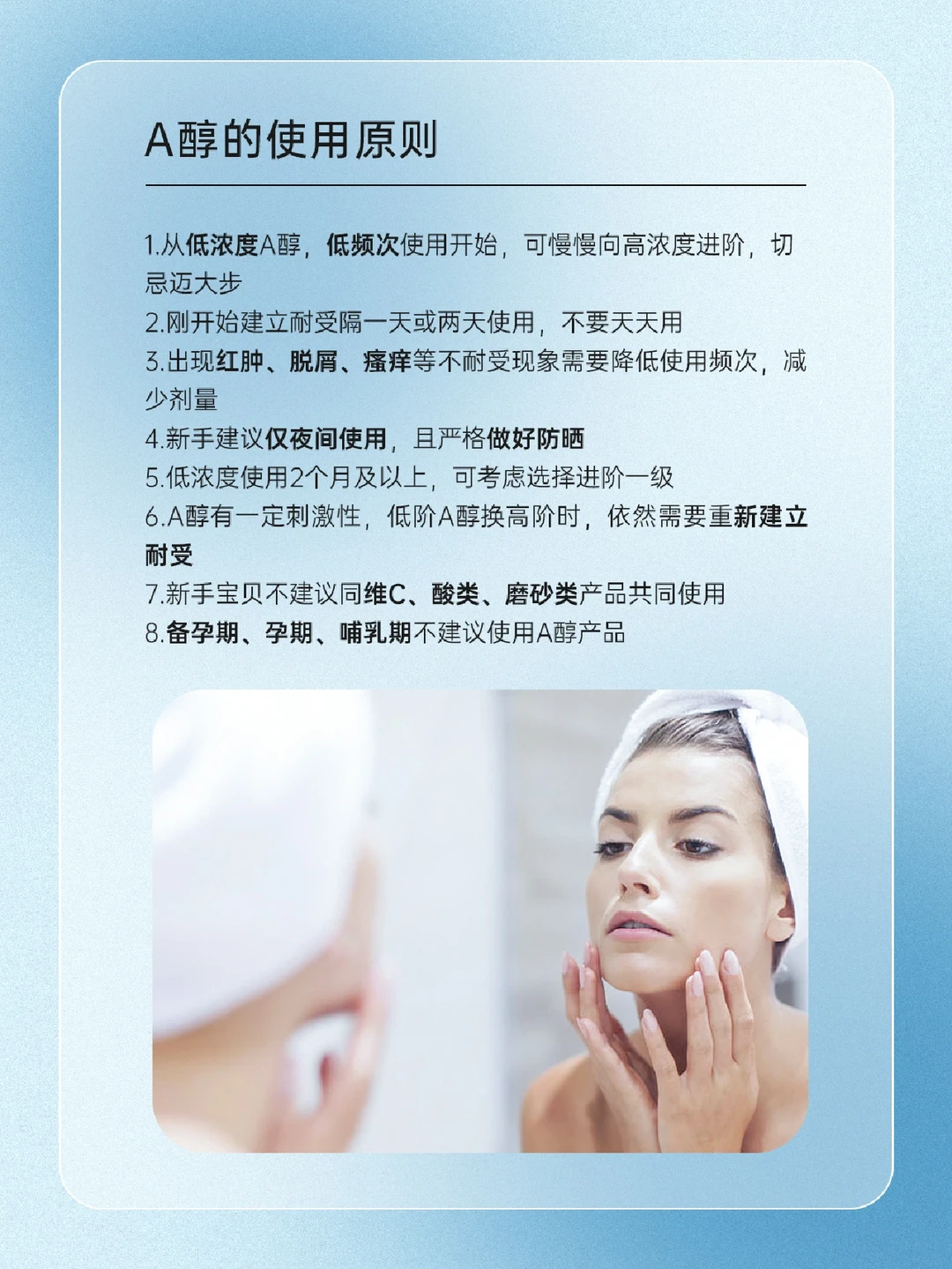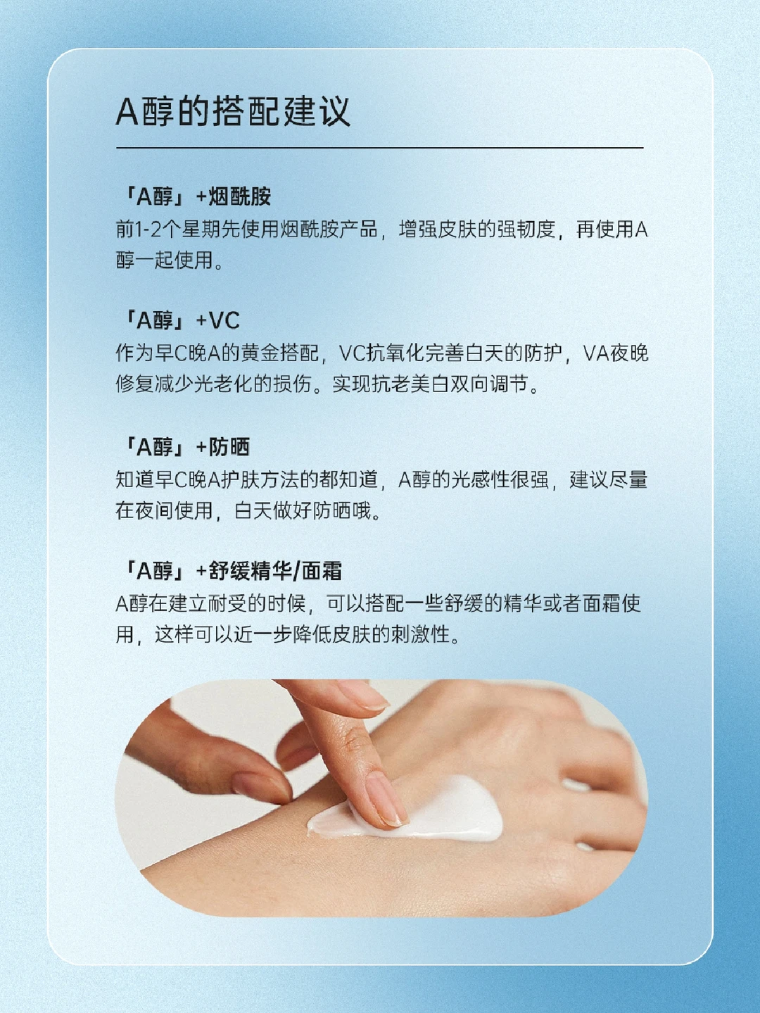 📝A醇是什么? 📝A醇的功效? · 淡纹抗皱 · 细致毛孔 · 美白淡.斑 · 抗光老化 · 控油祛痘 📝A醇的搭配建议 「A醇」➕烟酰胺 「A醇」➕VC 「A醇」➕防晒 「A醇」➕舒缓精华/面霜 📝A醇的使用原则 一起来了解一下吧,下期还想看什么可以❤➕🍎告诉我哦
