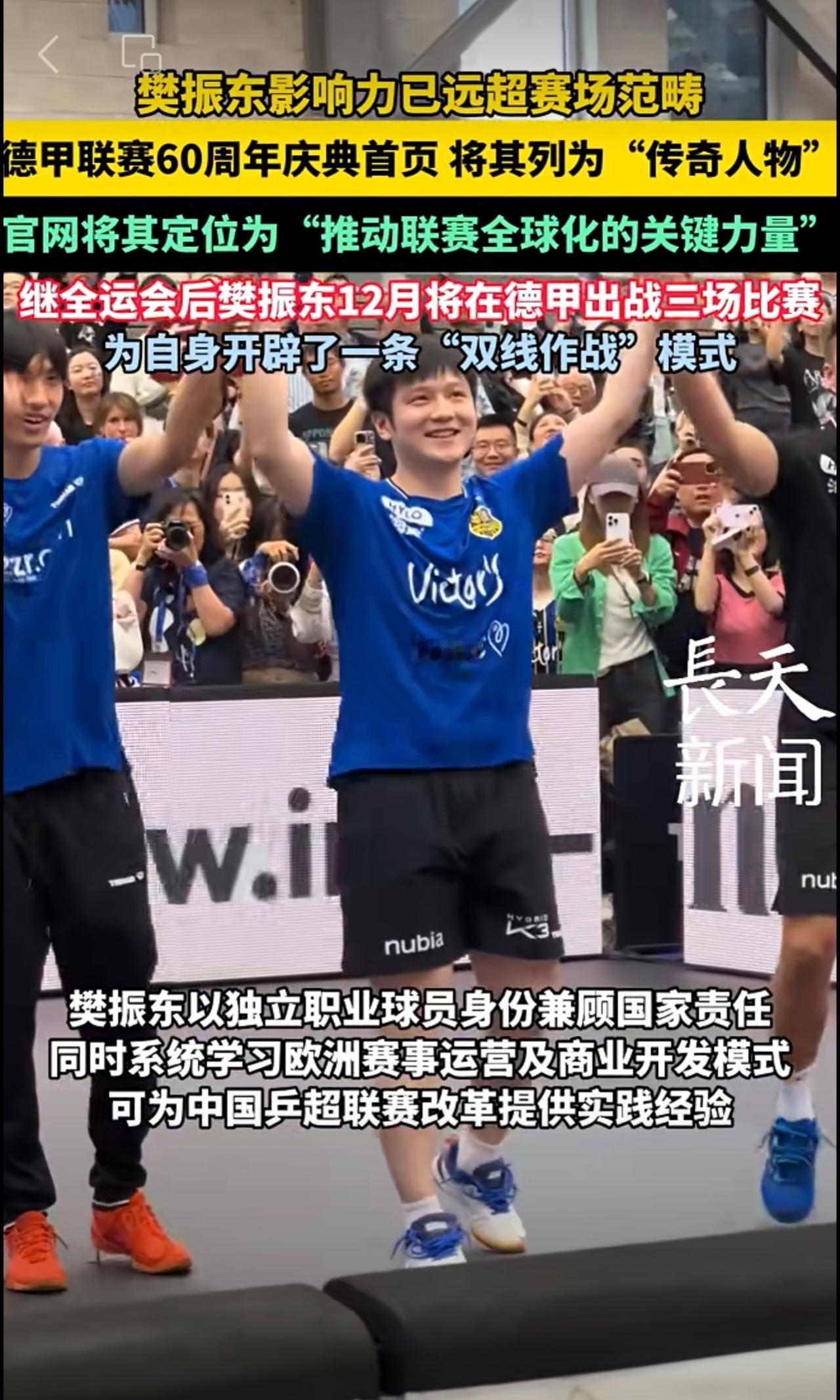 德甲联赛60周年庆典首页,将樊振东列为“传奇人物”!官网将其定位为“推动联赛全球
