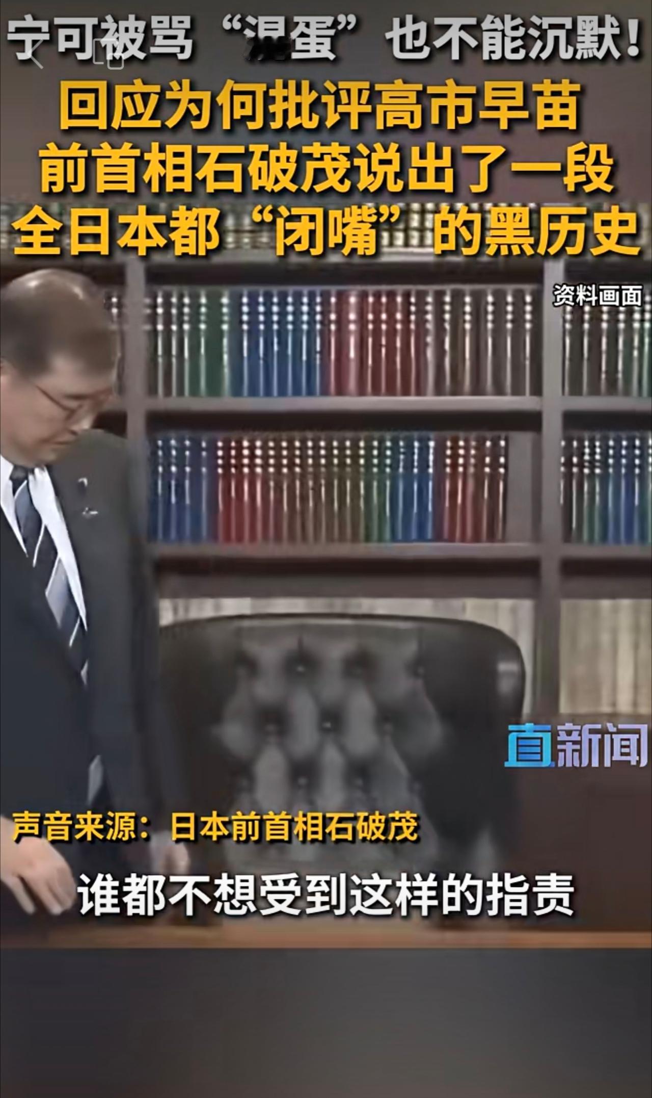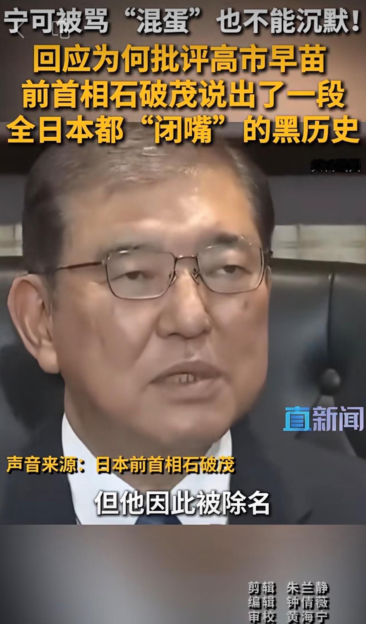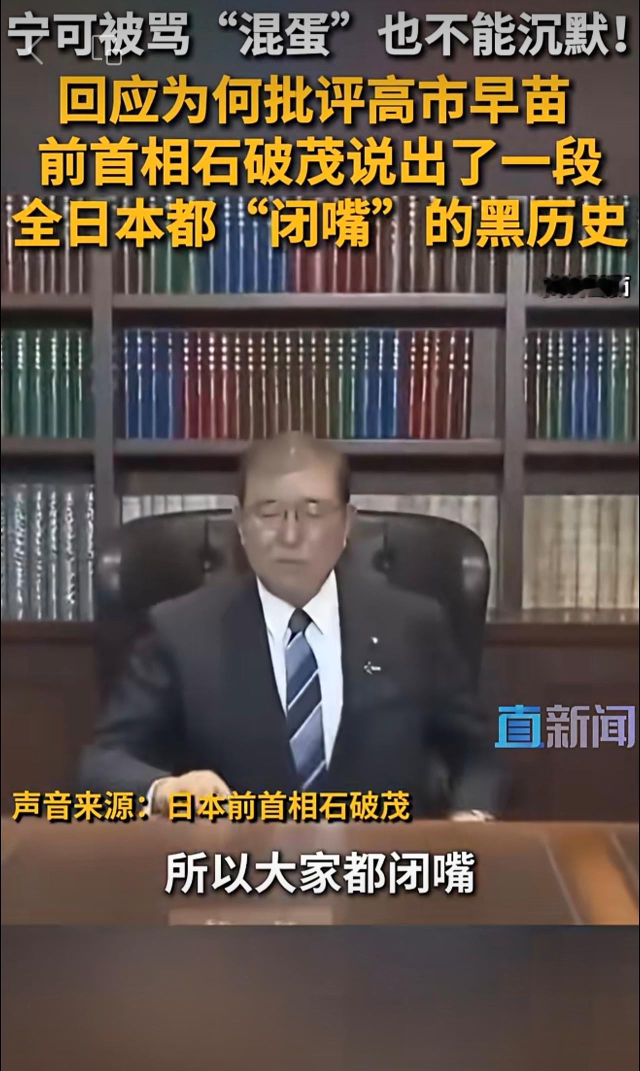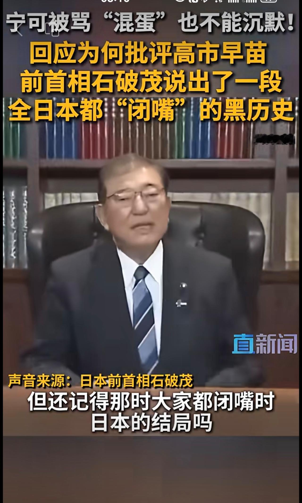日本前首相石破茂近期批评高市早苗内阁的言论被部分日本舆论指责“背后放冷枪”,石破茂12月2日在日本广播的一档节目上就此作出回应。表示“有些话说出来,会被指责,但还记得大家都闭嘴时日本的结局吗?”