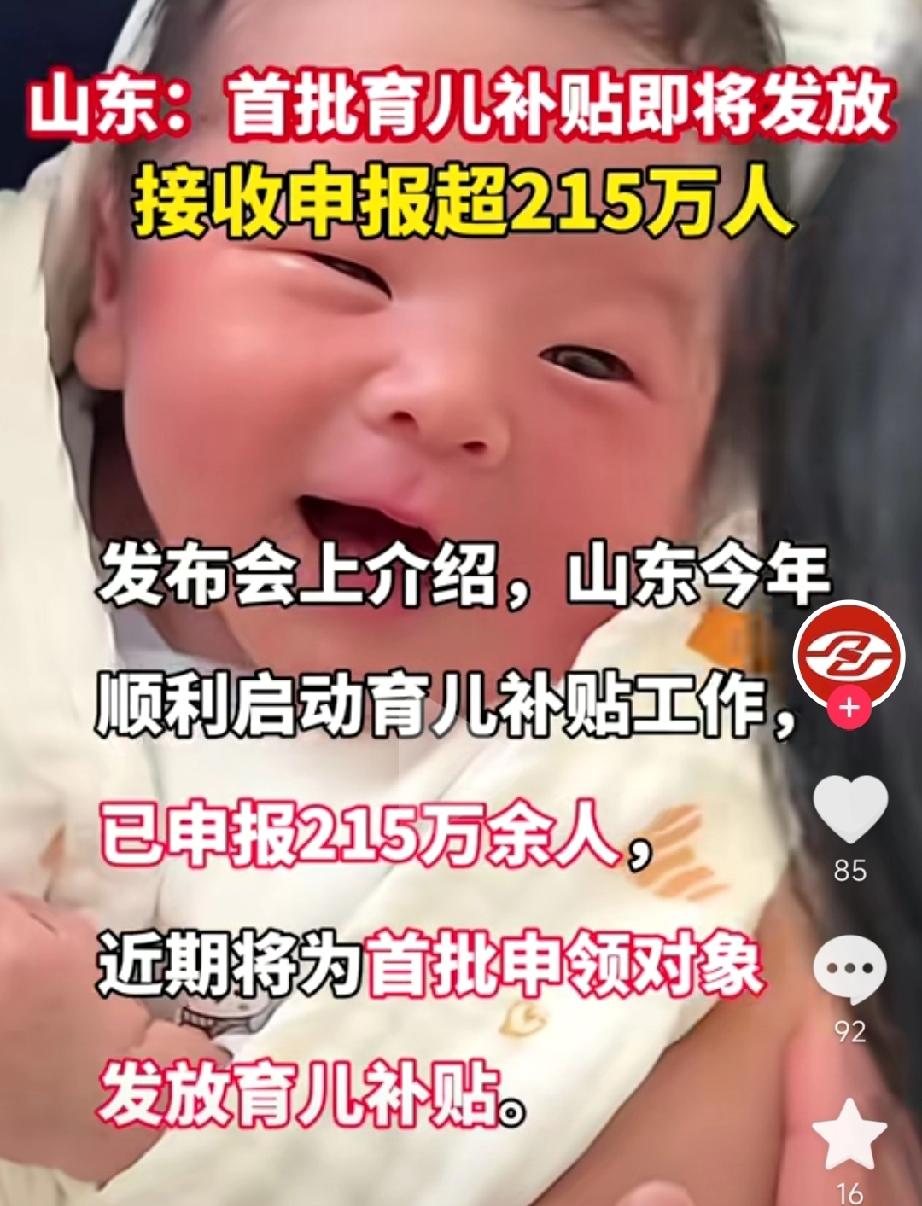 注意!注意!山东的育儿补贴即将到账!请查收! 近日山东省今年启动的育儿补贴发放工