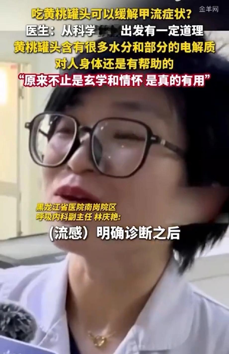 该不该信?专家说吃黄桃罐头治流感管用?黄桃罐头真的能管用? 专家说黄桃罐头作为食品,首先有水分,能有效帮助患者补充体液,缓解咽痛等症状引起的不适! 但是黄桃罐头作为甜品,吃多了反而容易上痰咳嗽!还说有用黄酒治流感等等,真是五花八门,该不该信呢?黄桃汁罐头 桃黄桃罐头 黄桃果汁罐头 鲜汁汁黄桃罐头 医生:黄桃罐头缓解甲流症状有道理