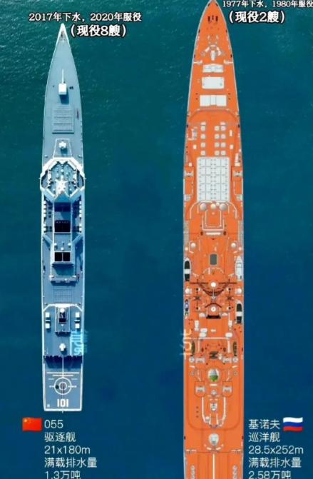 直到看到055和基洛夫并排的对比图,我才惊觉军舰设计已经隔了一个时代。   麻烦