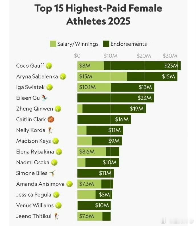 郑钦文全球女运动员收入榜第5谷爱凌全球女运动员收入榜第4 两位中国收入最高的女运动员!滑雪运动员谷爱凌排名全球第四4️⃣谷爱凌2300W美金(全部场外收入)网球运动员郑钦文排名全球第五 5️⃣郑钦文2060W美金(160奖金+1900场外)