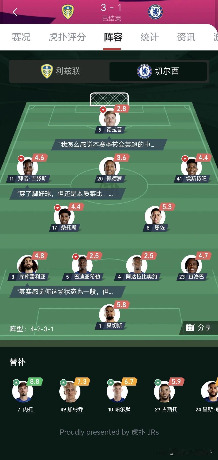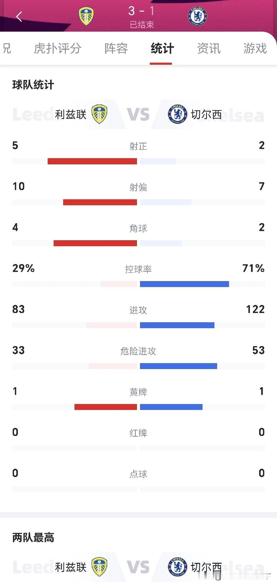 切尔西真的让人捉摸不透啊,上一场10人打阿森纳还占优势,这场11人踢利兹联怎么还输了呢? 上场像个超雄一样一个个的,死拼枪手,中场大将还直红停三场,扭头就送保级队三分,这不纯纯的抽风吗? 所以说车子还是那个车子,给强队找不足,给弱队找自信,谁都可以赢,谁都可以输,神鬼难辨啊。 其实目前切尔西的水准就是争欧冠突破,联赛保前四就行,夺冠这事就算了,稳定性实在太差。 今年英超冠军就是枪手和曼城争了,切尔西神一场鬼一场的只能搅搅局了。