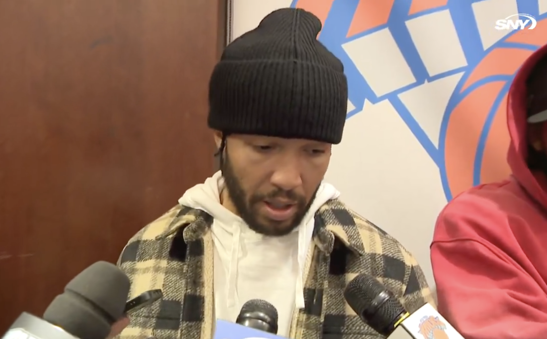 赛后尼克斯球员杰伦-布伦森在接受记者采访时谈到了在昨天负于凯尔特人后,今晚对阵黄蜂的反弹之战,布伦森表示:“我们本可以轻易归咎于‘尽力了’,但我们选择继续拼搏、继续并肩作战。”