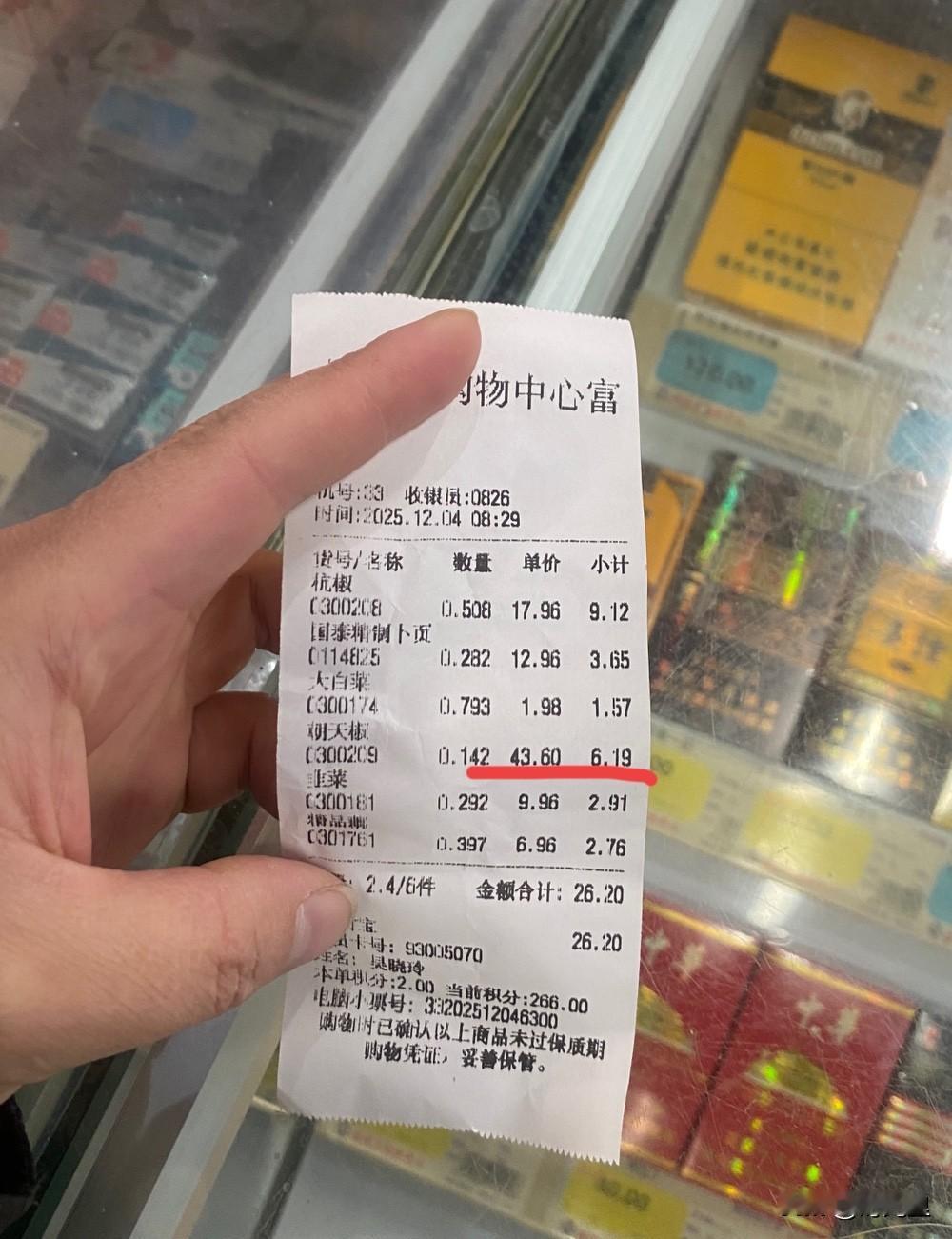 想到一个事,真是奇葩。买了一小把小米辣,6.19元,真的不多,平时大概2元就可以买到,觉得有点贵了,退了,结果退了我6.1元钱现金,我说,怎么还少退了呢,收银员说,手机支付的~退不了 这是不是很搞笑,我不买了还亏了0.09元,[翻白眼]我买的话,也是赚我钱,不卖还扣我钱,我无语冷笑着走了~ 想着心里有点不舒服,我可以很大方的不要,但是超市不能理直气壮的扣。 还真是奇葩呢,如果我缺0.09分钱,超市会不会算了呢?不会,肯定不会… 农家小米辣 重庆小米辣
