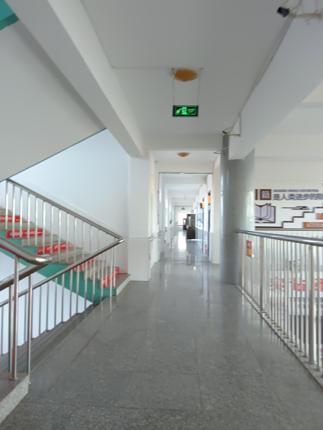 现代校园的静谧走廊,绿意盎然的楼梯引人注目。