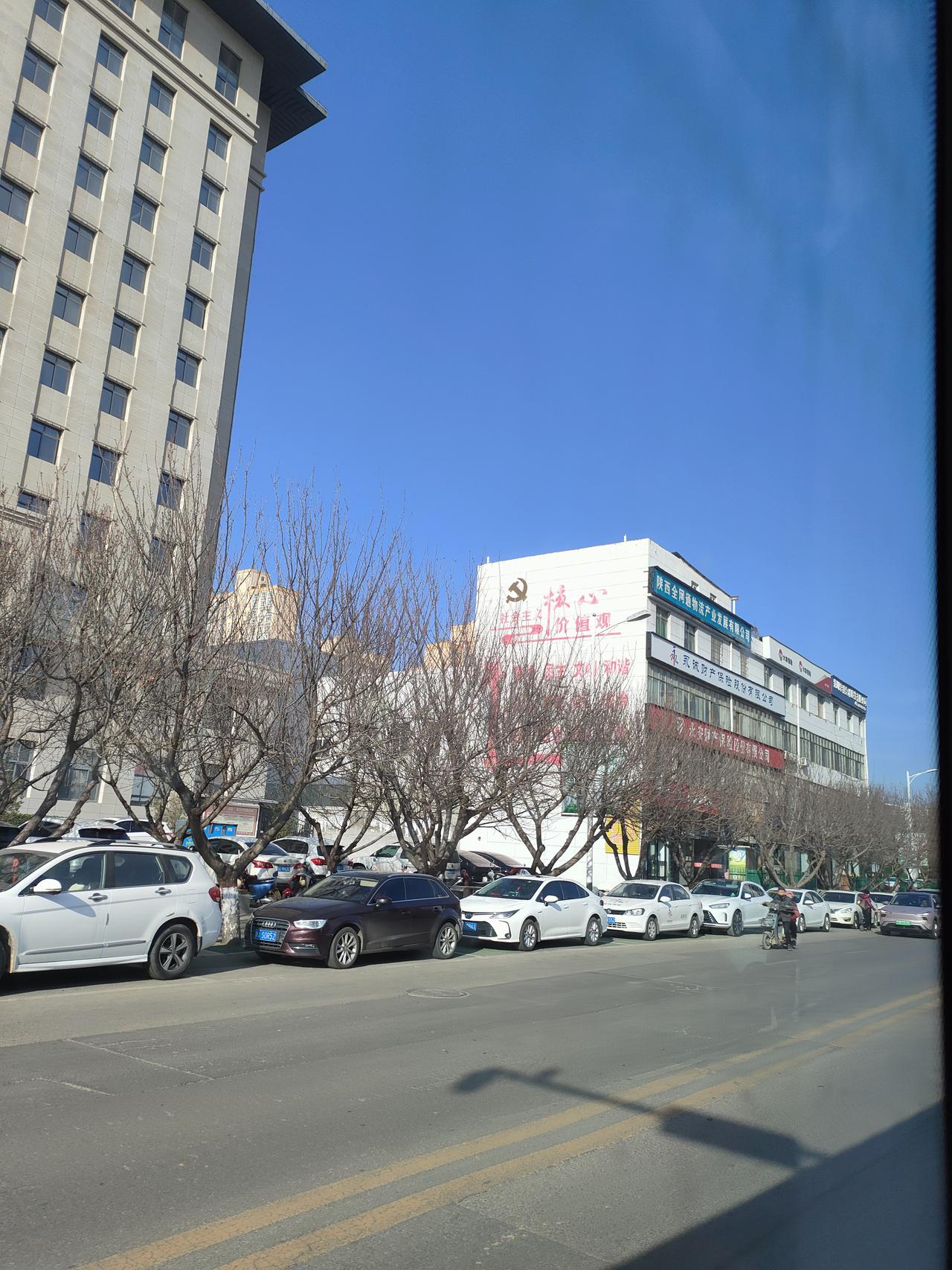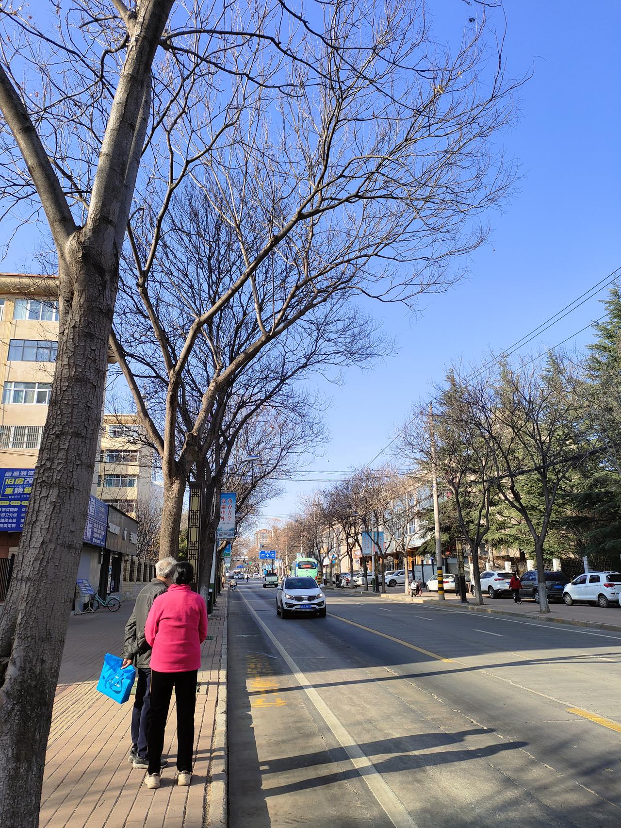 冬阳把天空染得透亮,疏枝在楼宇间勾勒出清简的线条。街边的车、墙上的字,裹着寻常日子里的烟火气——这是冬天里,刚好的晴朗与安稳。