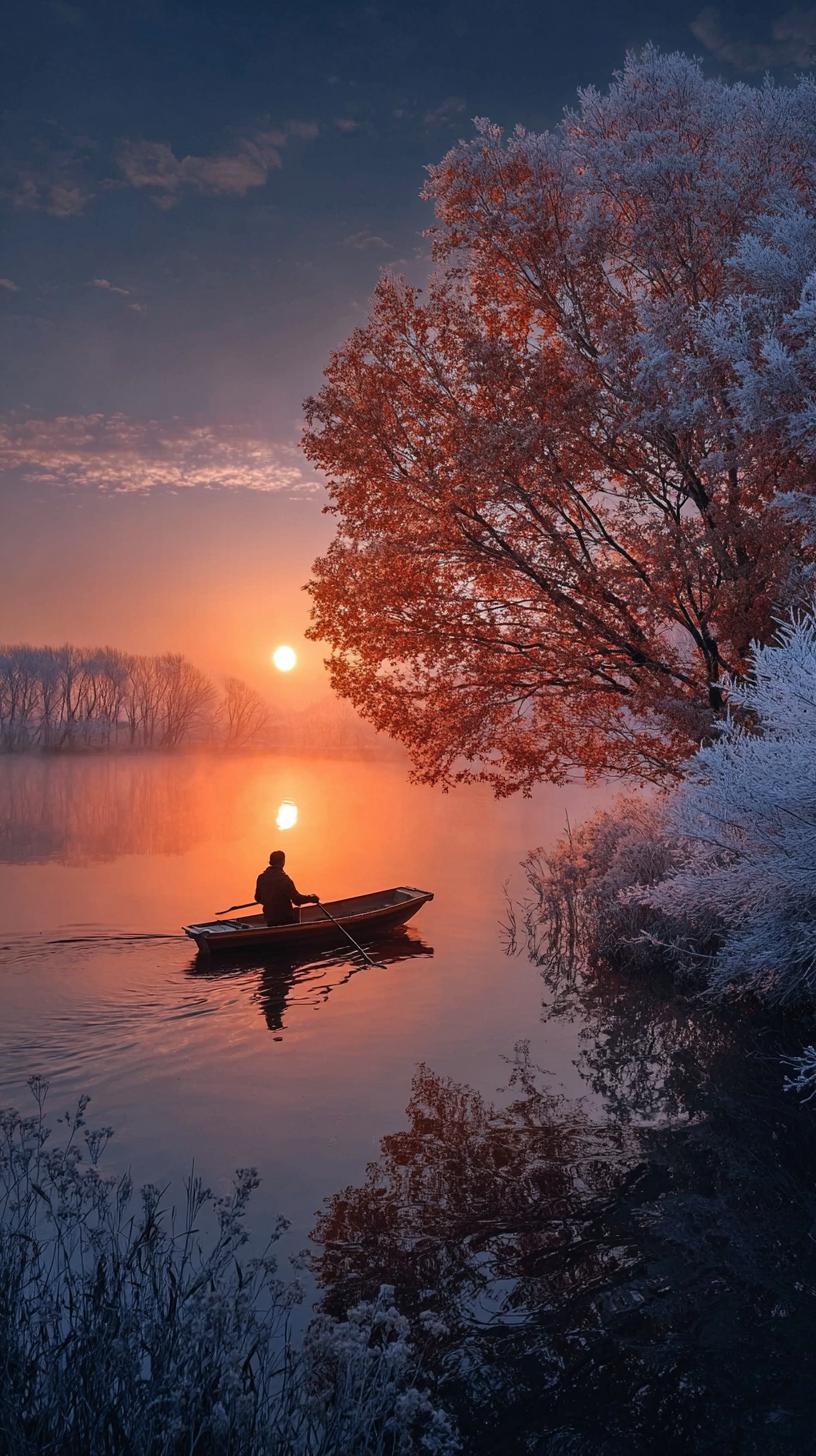 美图欣赏,看图写诗《荷风晚酌》藕风拂袖送清欢,落日沉波染碧栏。暂卸