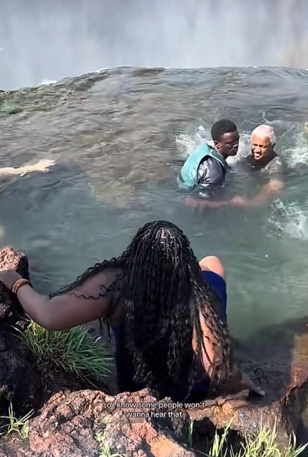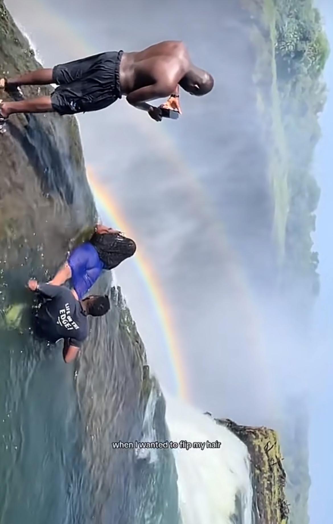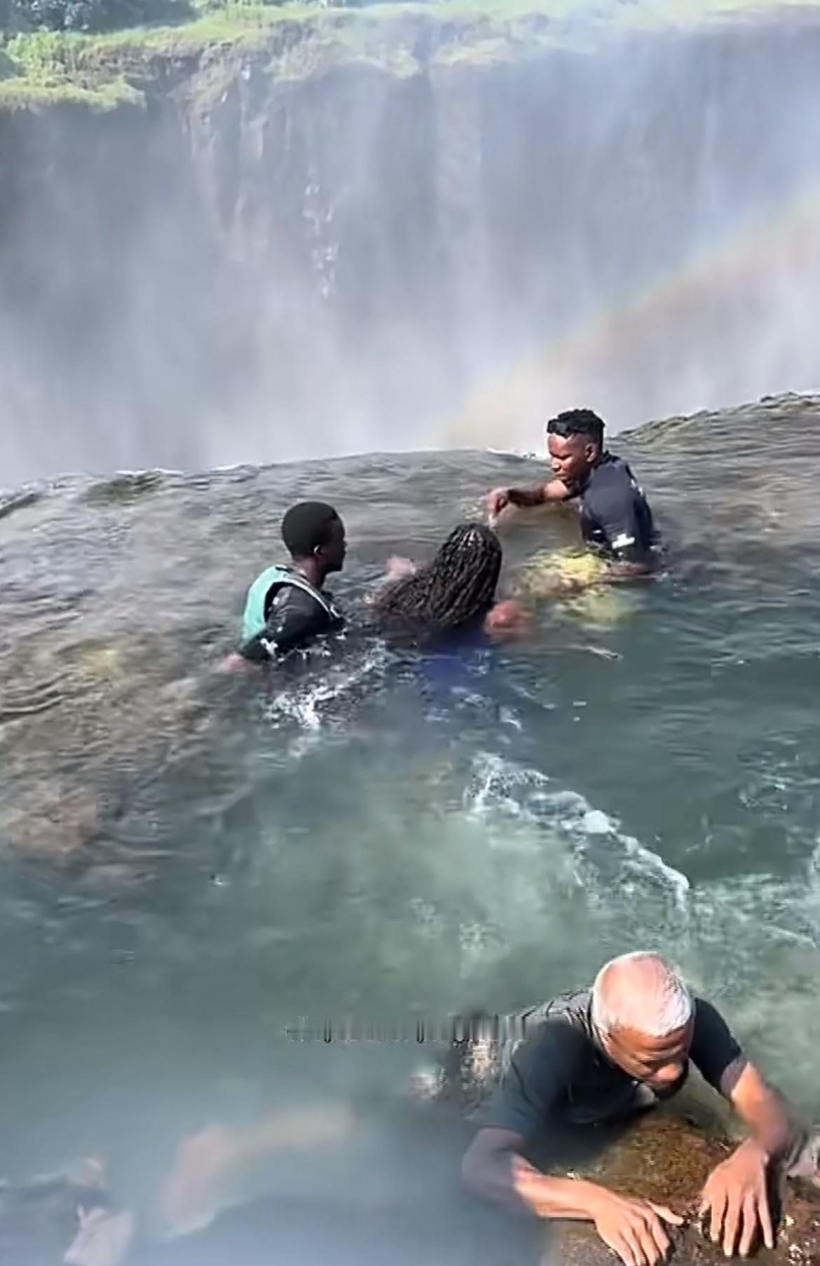 黑人网红用生命在拍照、 网红分享自己在赞比亚的维多利亚瀑布拍摄的视频,在瀑布上面躺着拍照,下面是悬崖峭壁万丈深渊,网友纷纷提醒这种行为存在危险,网红回应“这是当地的产业,有安保的人在拉着她的腿防止被水冲着” 掉下去又是另外一个故事了……