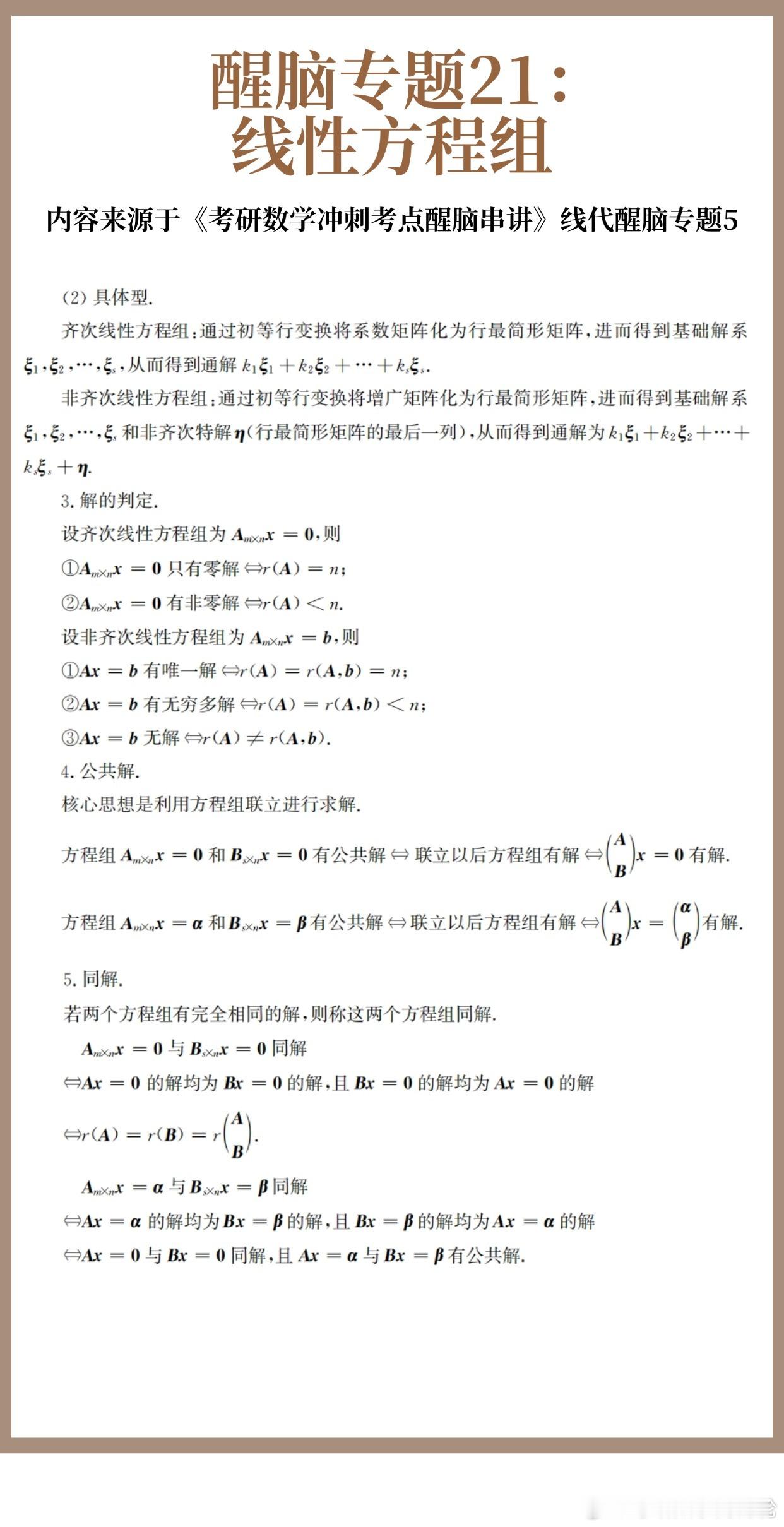 【D25】考研数学30天急救计划!【醒脑专题21】:线性方程组(下)30天30个核心专题,把数学重要的公式和考法总结回顾一遍!每天背一背,写一写,不负过往,终将上岸!决战考研 考研 考研数学