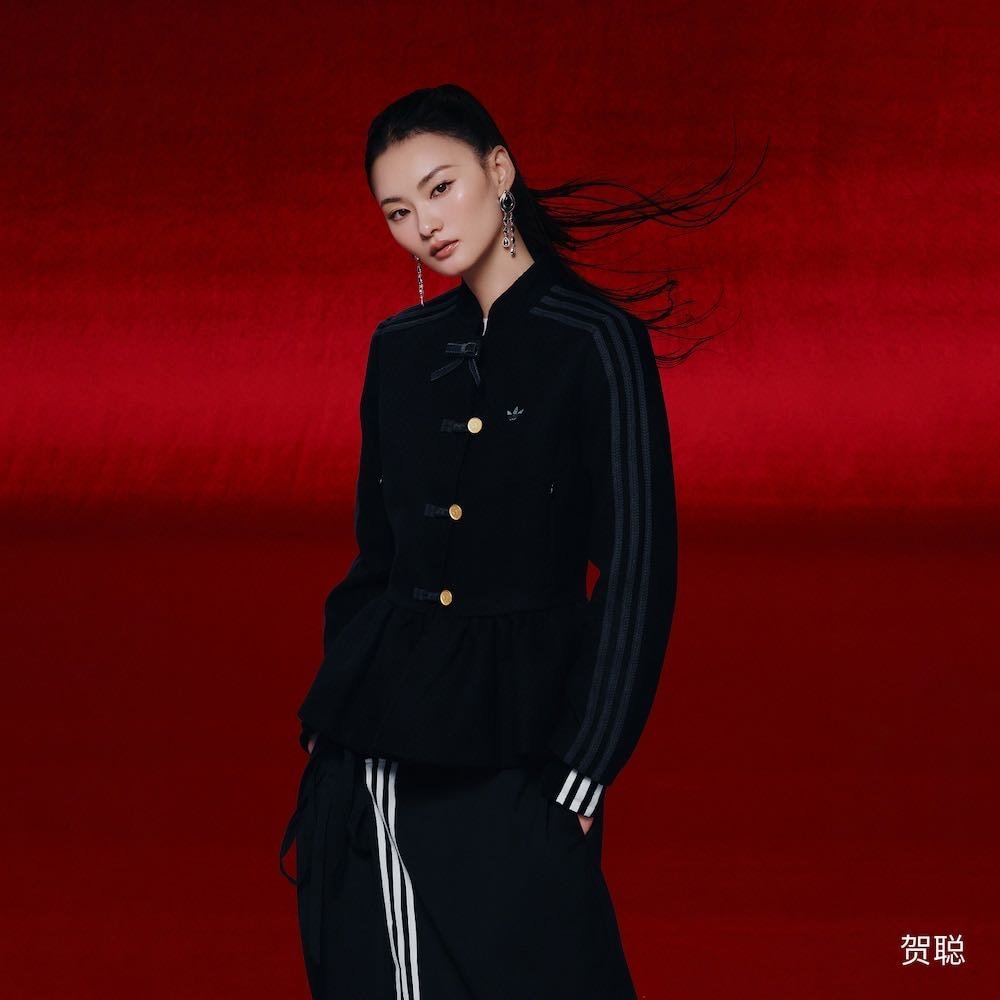 模登日记阿迪全爱豆同款!谁能拒绝盘扣+三条杠的神仙组合啊!贺聪黑裙款+金属扣,暗黑国风美到失语贺聪演绎新中式运动风