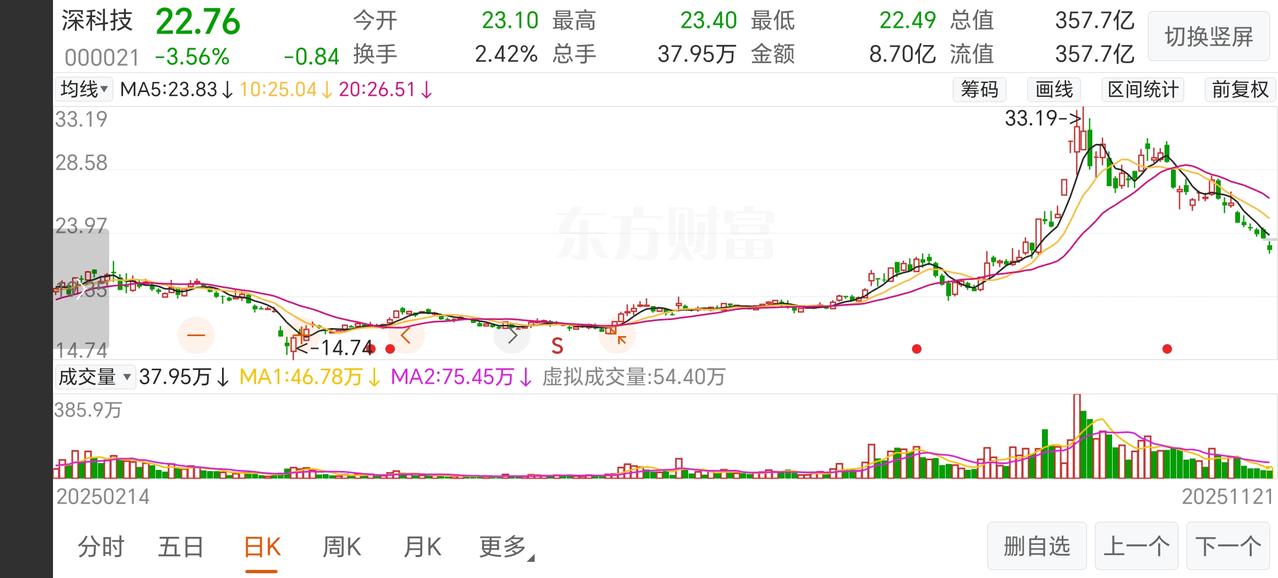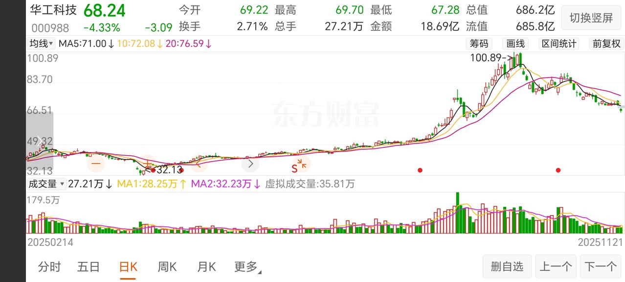 我从10月24日清仓卖出最后一笔飞凯材料至今快一个月,略算了一下,如果当时买进科技股至今略浮亏20左右,50万就浮亏10万,现在看来当时的果断还是非常明智的。 有点有投资者认为,这两天大盘的回调,可能主要是受近日来中日关系紧张的影响,我却不是这样认为。中日关系紧张是有一点影响,但并不是主要原因。 我觉得还是有些该涨的个股一段时间以来已经涨得太高。一些质地不咋滴,不被资金看好的个股,不涨就是不涨,涨也是小涨。 另外就是全球股市近段时间以来,也一直在虚涨,而目前全球的贸易、投资大环境也支撑不起股市这样虚涨下去。再说了,全世界又有多少个像英伟达这样的高科技公司,手握5000亿美元订单,生产排满到2026年。就算这样强势的全球科技龙头股,在大幅高开的情况下,尾盘都跌得那么惨烈,何况一些没有业绩支撑的科技股。 所以我觉得,接下来全球股市应该还有20%左右的下调空间。 到时再慢慢建仓,等待下一个上涨周期的到来。