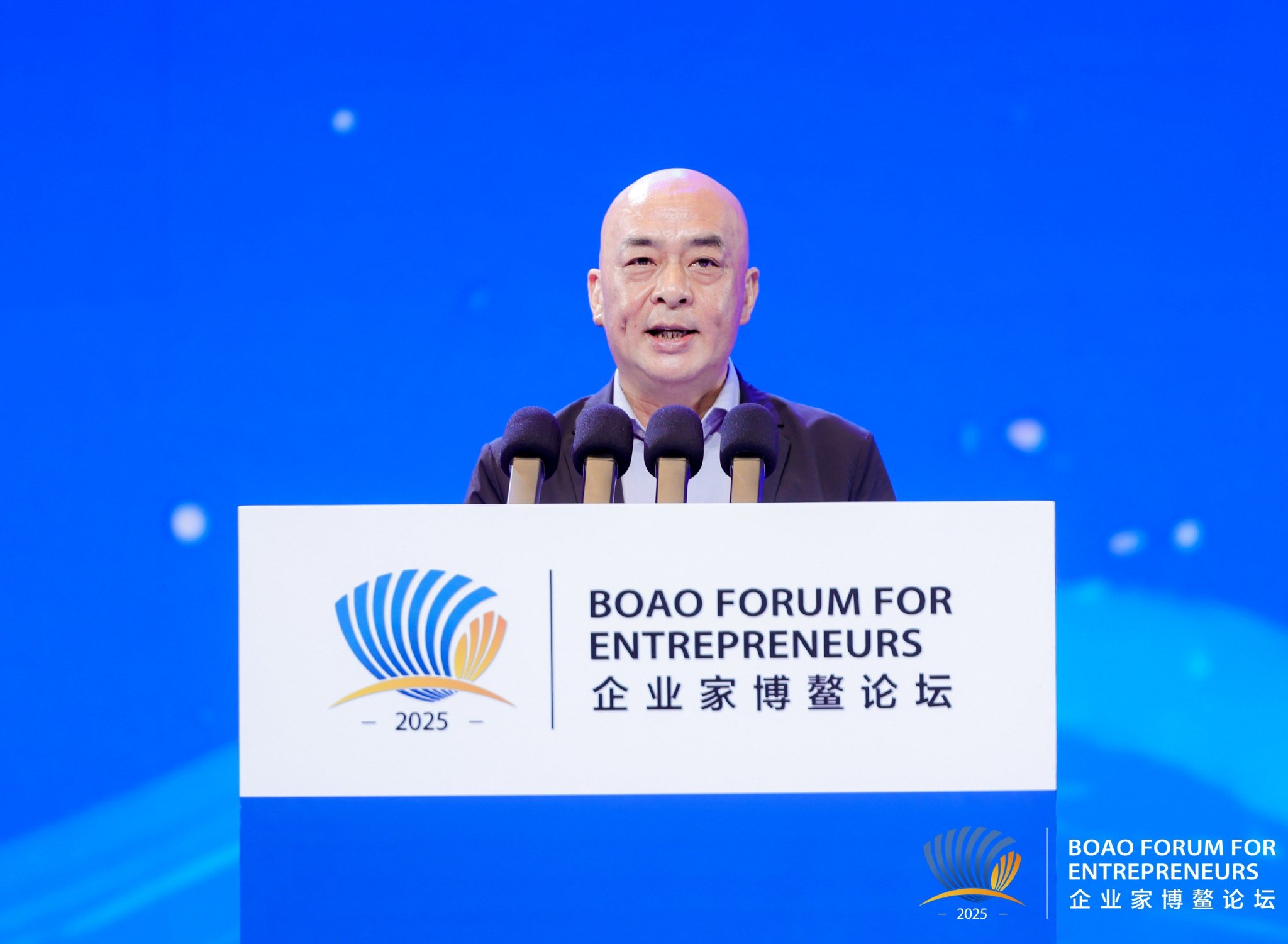 图为潘海平在2025企业家博鳌论坛的主论坛上发表演讲