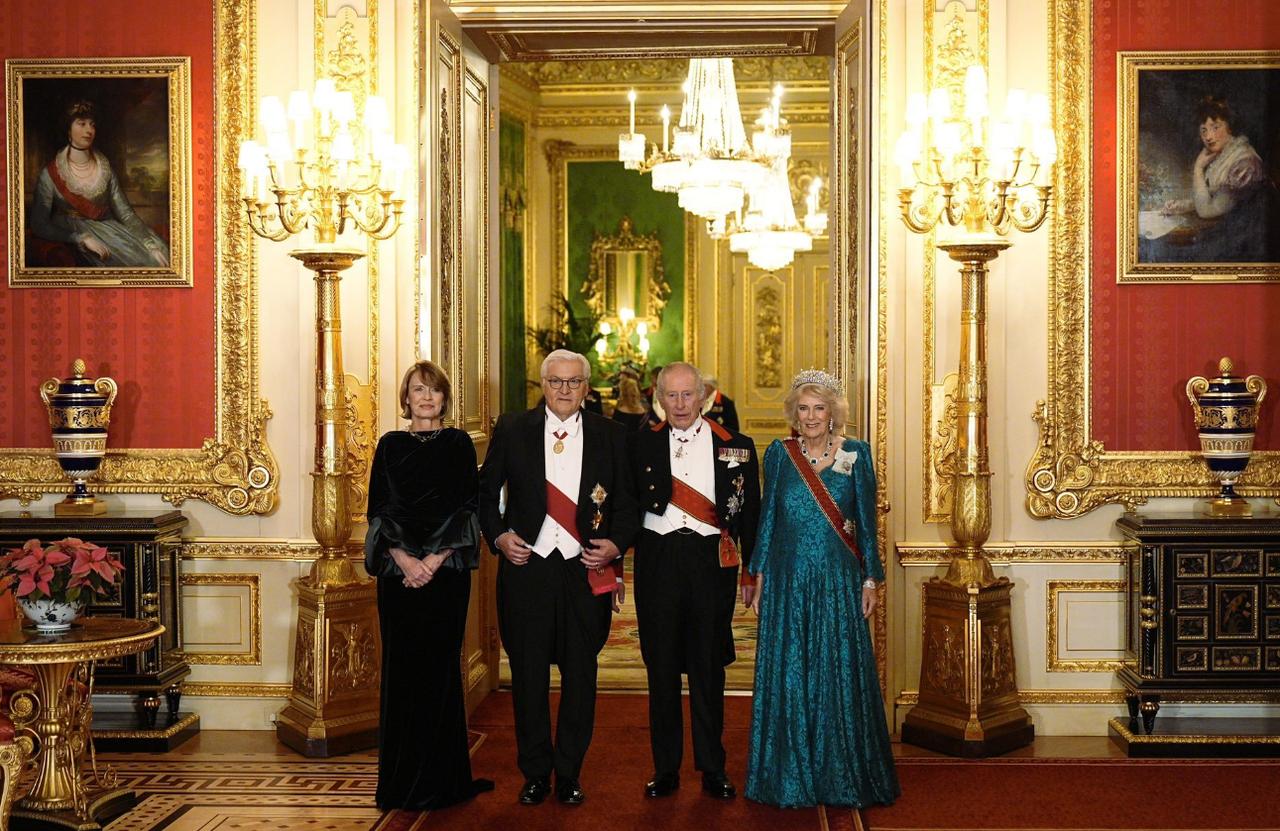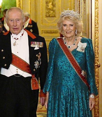 玷污王室珠宝的女人,英国和爱尔兰的女孩们,送给玛丽王后的王冠沾上了卡米拉王后的棉条味道。 查尔斯国王和卡米拉王后在温莎城堡,接待德国总统施泰因迈尔和夫人。 卡米拉的形象气质一如既往的不堪,她身上的王室珠宝从此都不干净了。