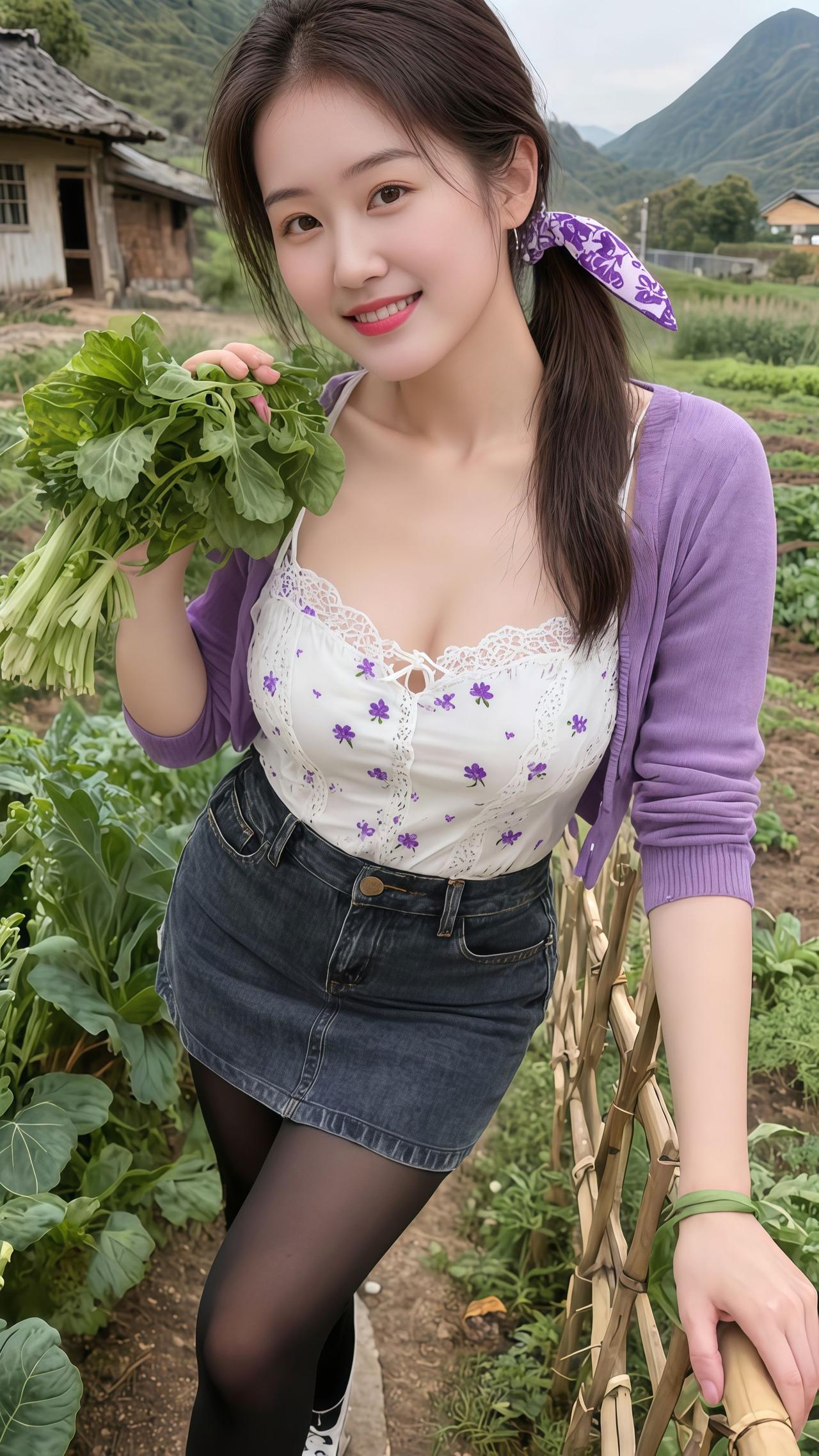 山里姑娘清纯甜美农家菜园摘菜