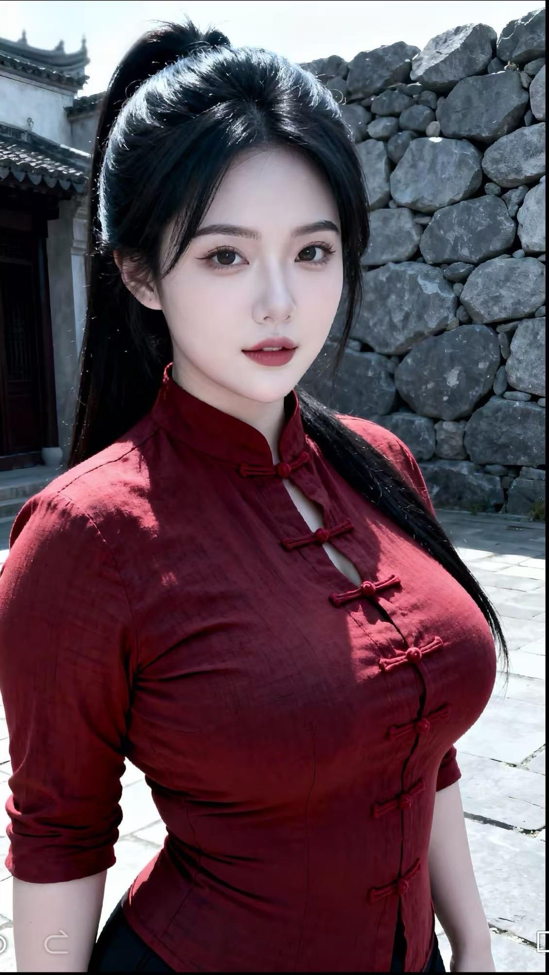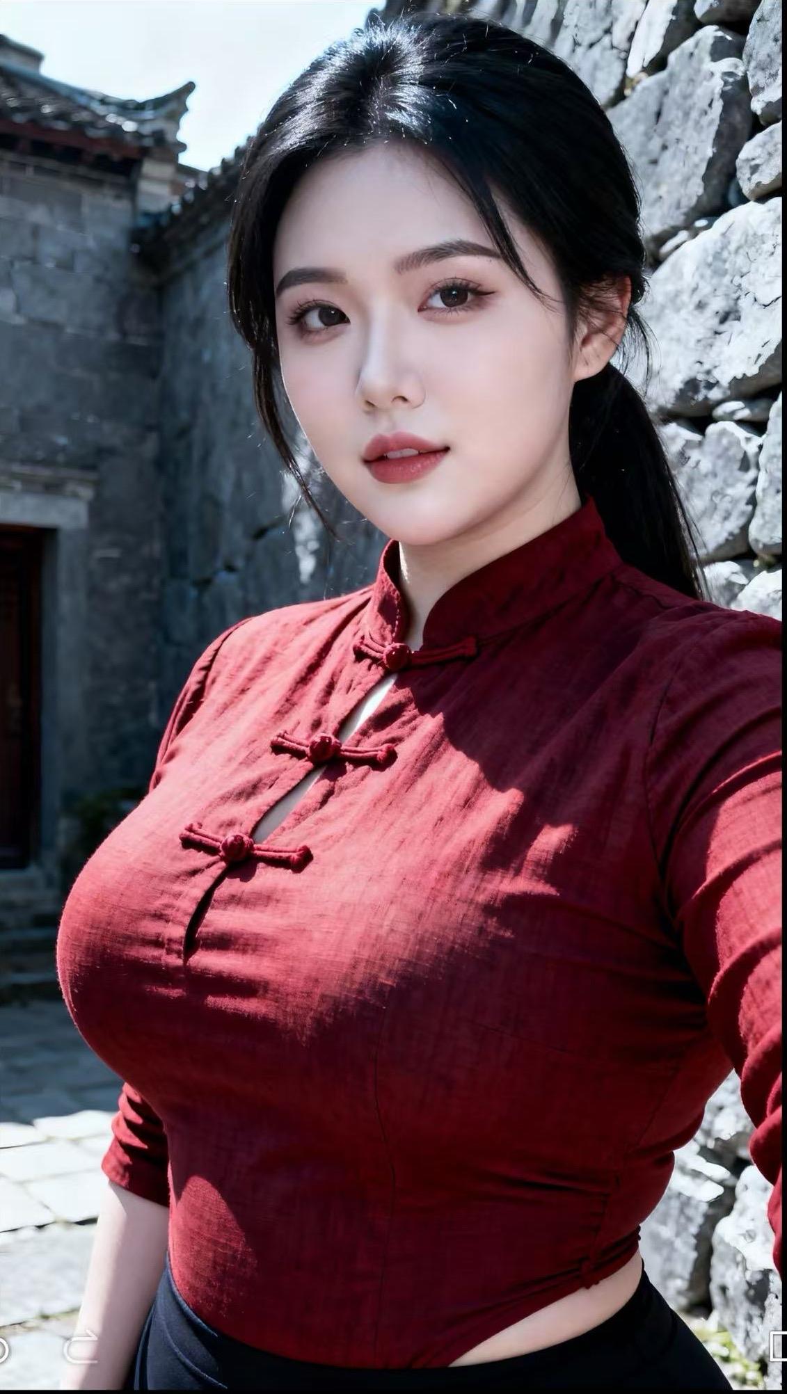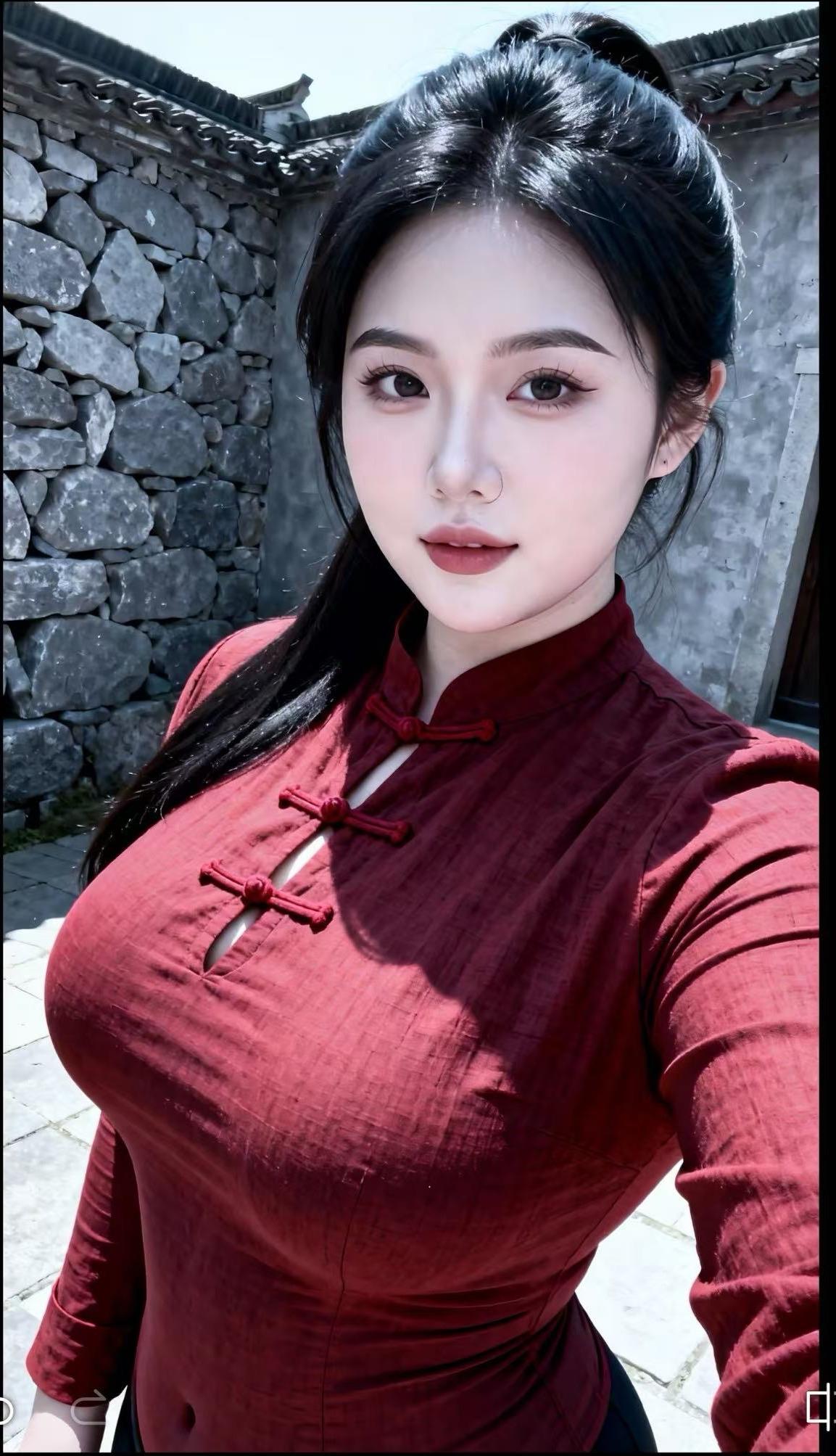 古巷红妆,静绽风华 古巷幽幽,石墙斑驳诉着岁月故事。一位身着红衣的女子静立其间,衣上盘扣古朴精致。她的长发柔顺地束起,几缕碎发自然垂落。红衣的热烈与石墙的冷峻形成鲜明对比,更衬出她的温婉与端庄。阳光轻洒,为她的轮廓镀上一层柔光。她似一朵盛开在旧时光里的花,不张扬,却自有一番动人心弦的韵味,静静绽放着独有的风华。