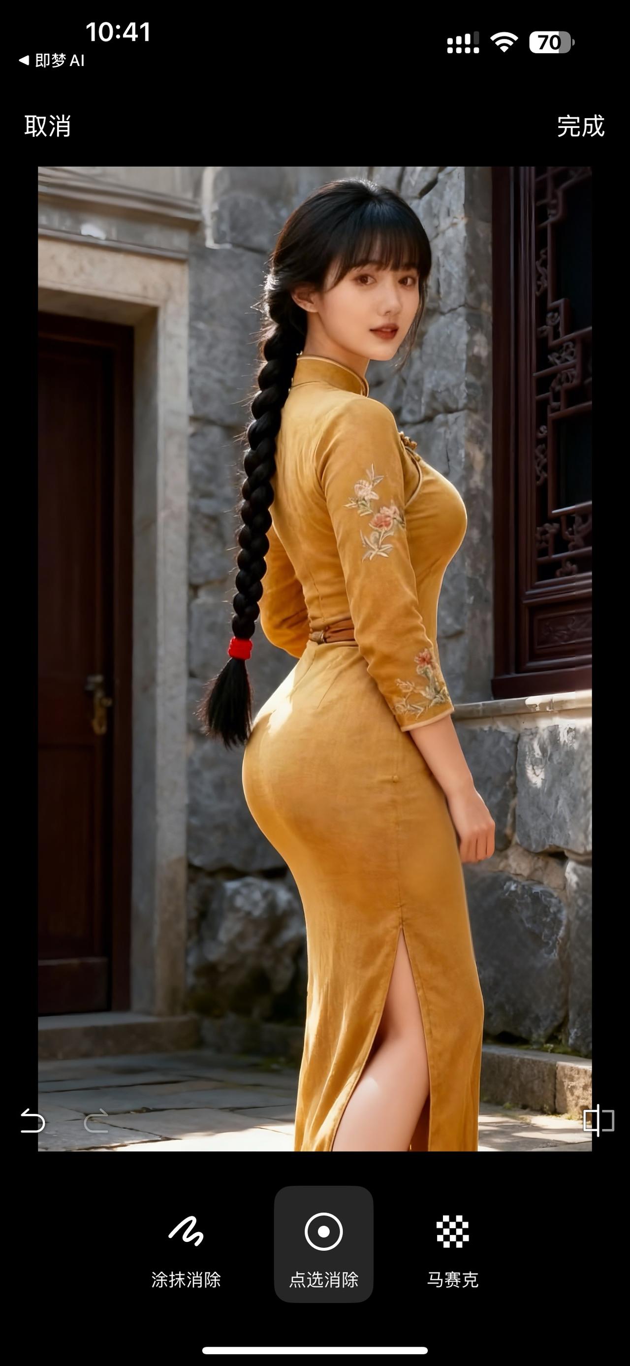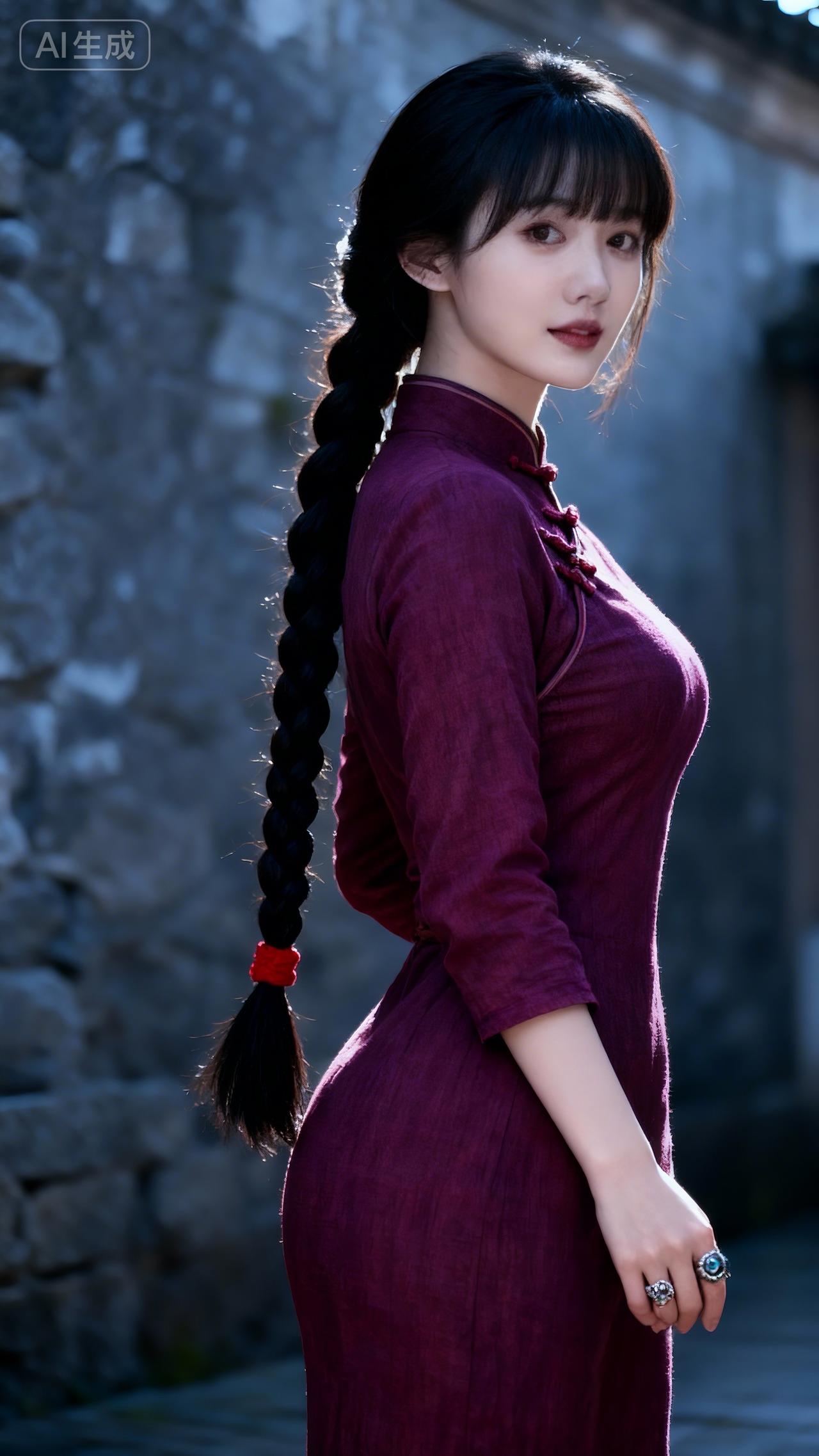 古韵佳人,悠然时光 阳光轻洒,一位身着传统华服的女子悠然而立。精致的绣花于衣袖间若隐若现,诉说着细腻与典雅。她的长发编成垂坠的辫子,发尾红饰轻颤。倚着斑驳石墙,或立于古雅门前,眉眼含情,浅笑嫣然。举手投足间,尽显温婉柔情,仿佛将时光凝固,勾勒出一幅绝美的古典画卷。