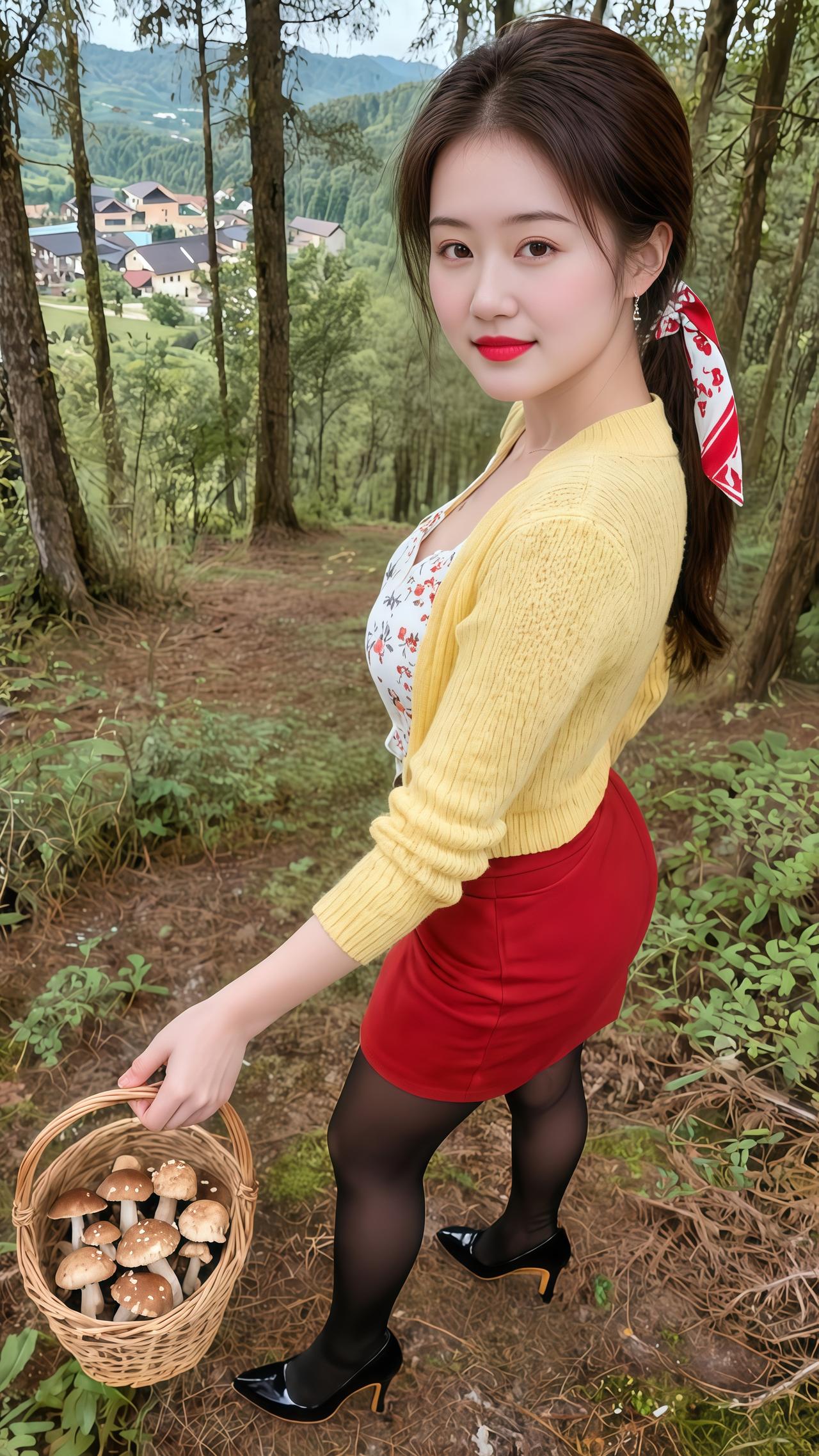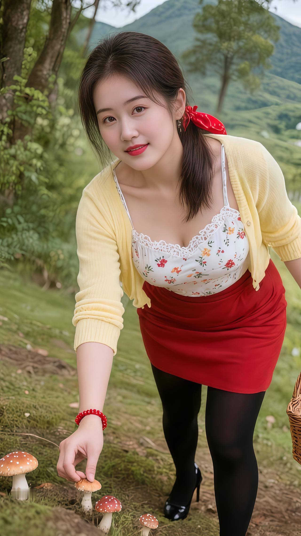 山里姑娘 清纯甜美 采蘑菇户外风景