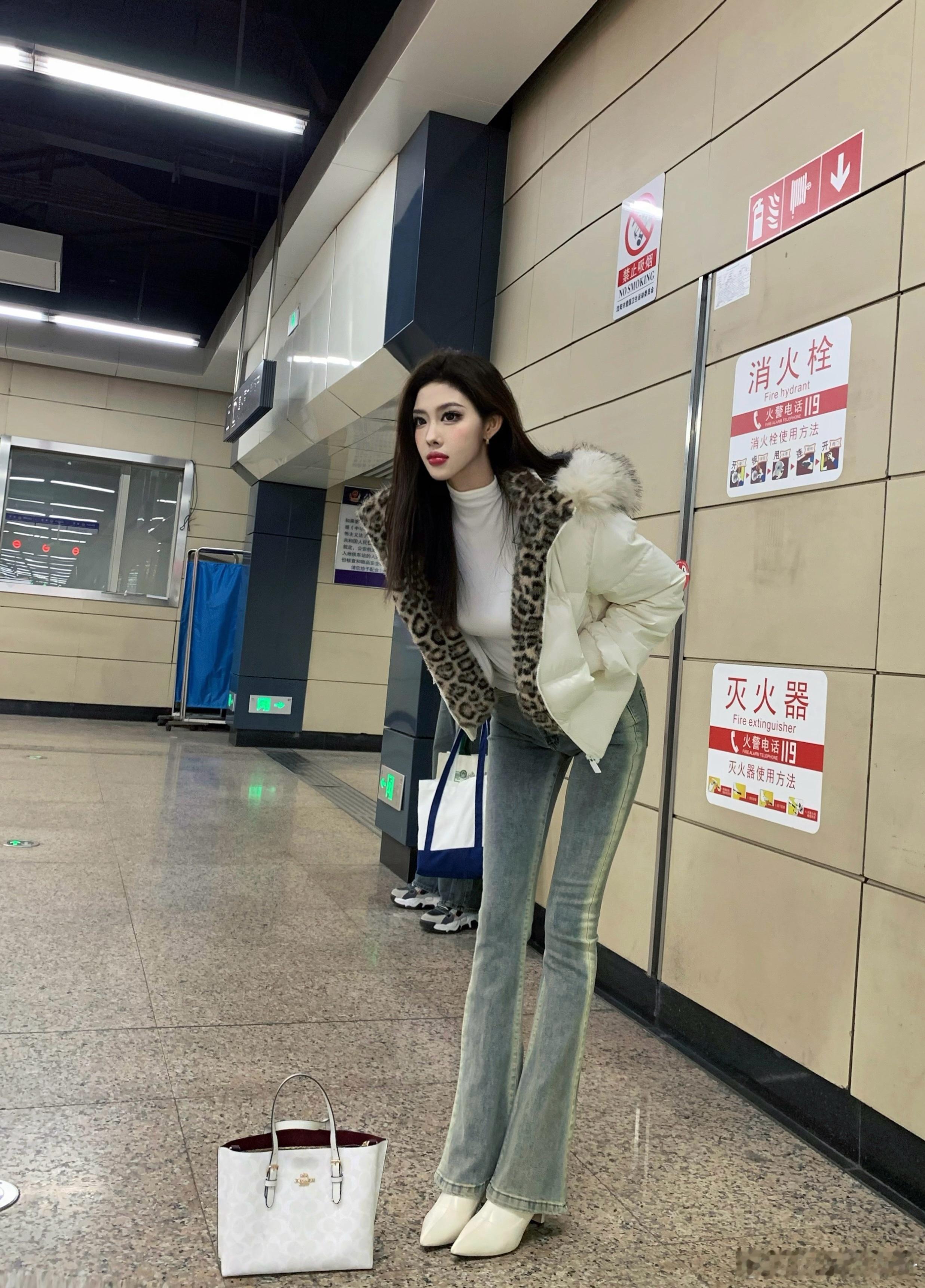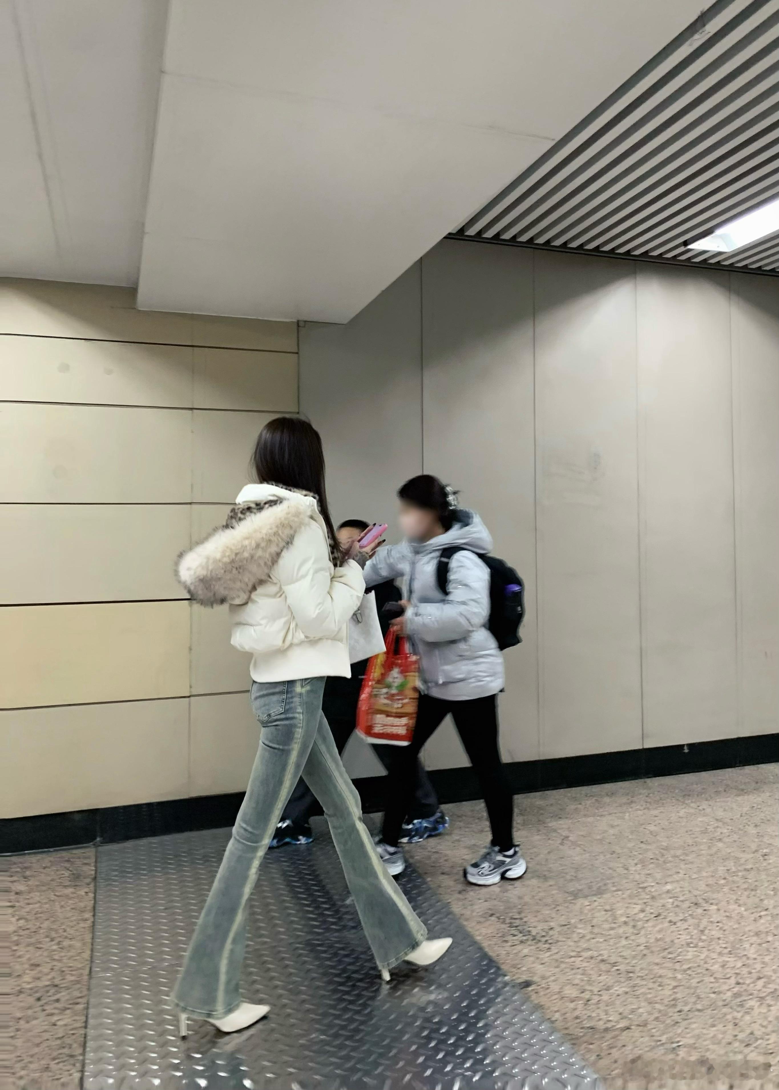 小姐姐地铁站里等你偶遇!地铁站台的灯光里,她是自带焦点的酷辣少女:顺直长发衬得轮