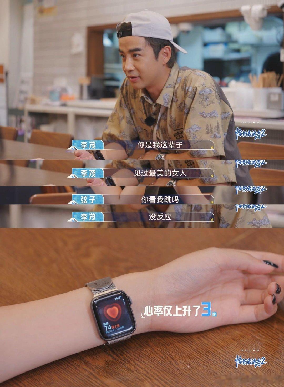 李茂弦子到了对情话不为所动的年纪 九年夫妻李茂弦子,玩心跳挑战状况百出!李茂深情讲情话,弦子初始心率71稳得很还吐槽。弦子夸李茂,李茂心率象征性跳跳。这夫妻处成损友,情话难让他们有反应