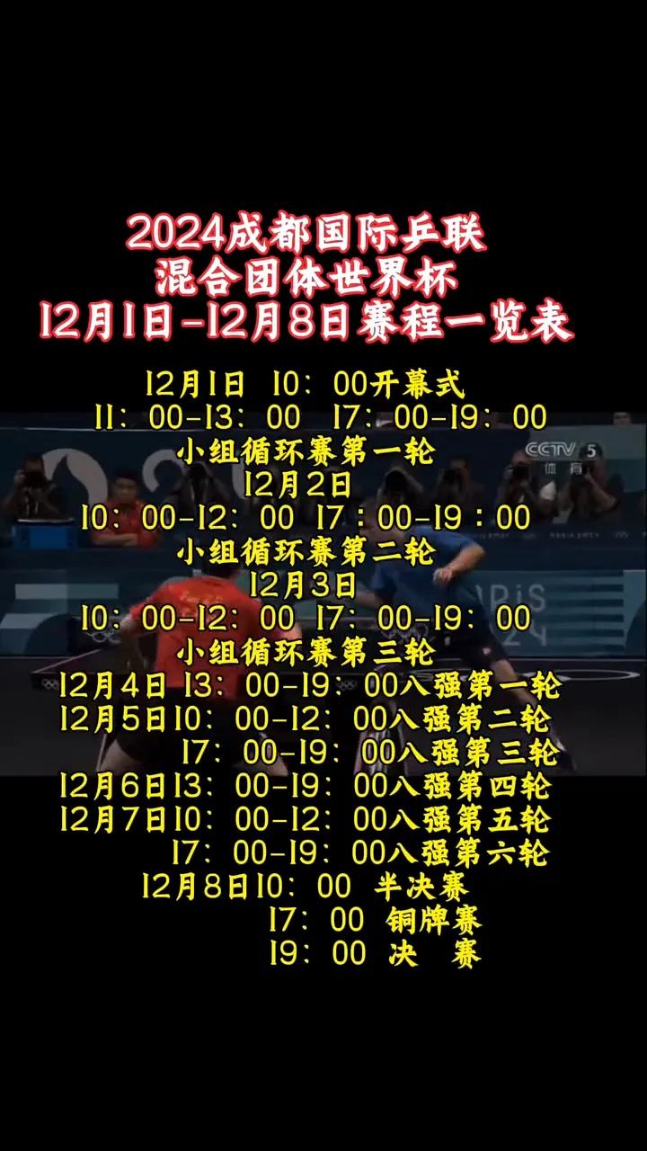 成都国际乒联混合团体世界杯将于12月1日至8日在四川省体育馆举办。11月28日,