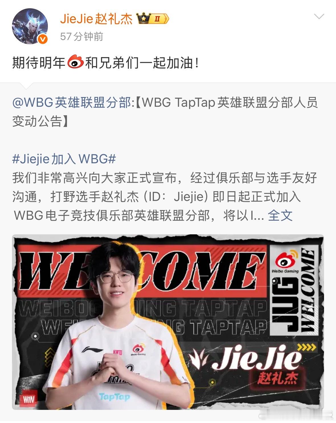 Jiejie加入WBG S11冠军打野JieJie确认加盟WBG,AD Elk、