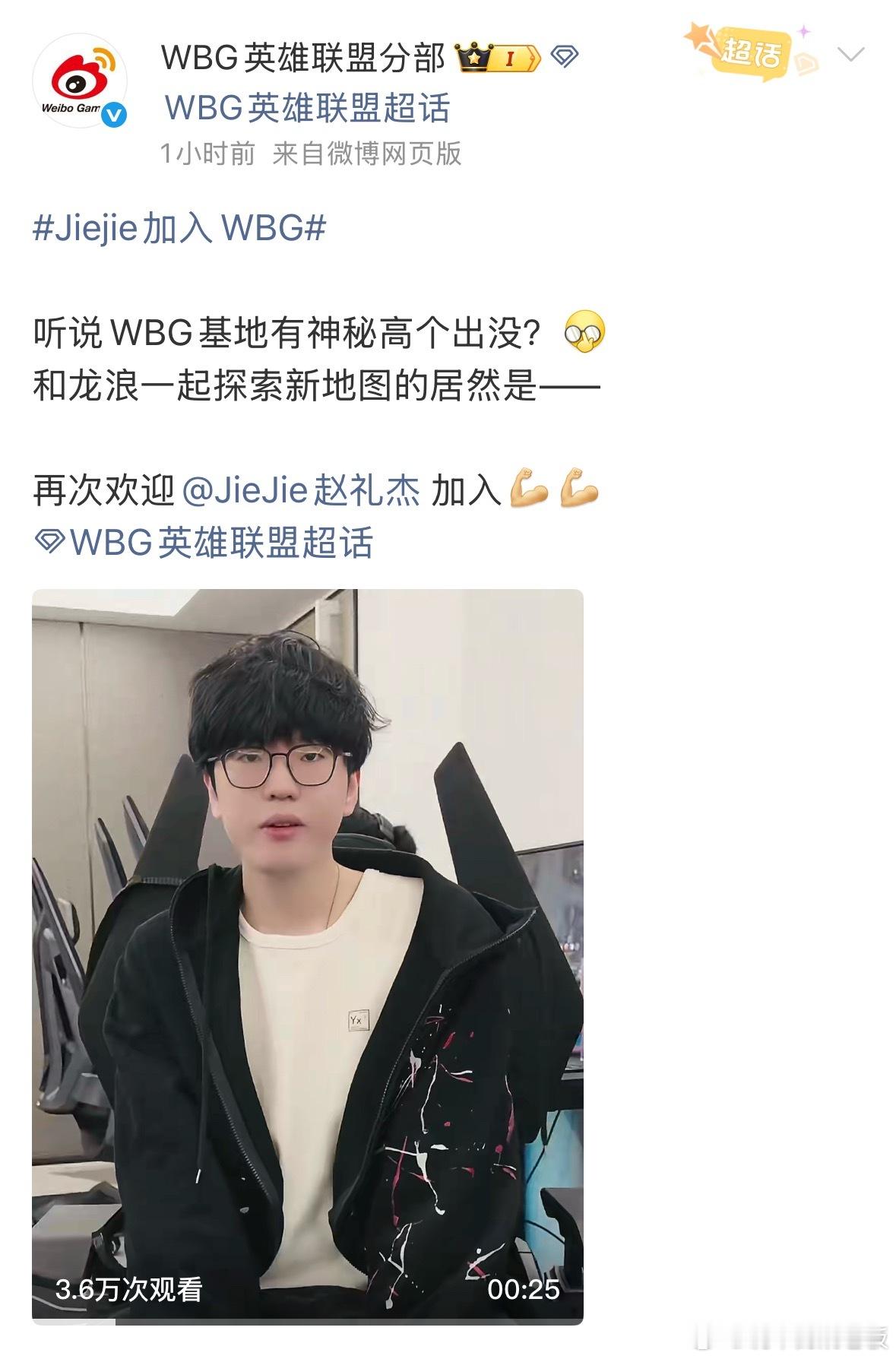 Jiejie加入WBG S11冠军打野JieJie确认加盟WBG,AD Elk、辅助 Erha、中单 小虎、上单Zika,感觉明年最强全华班就是WBG了啊!