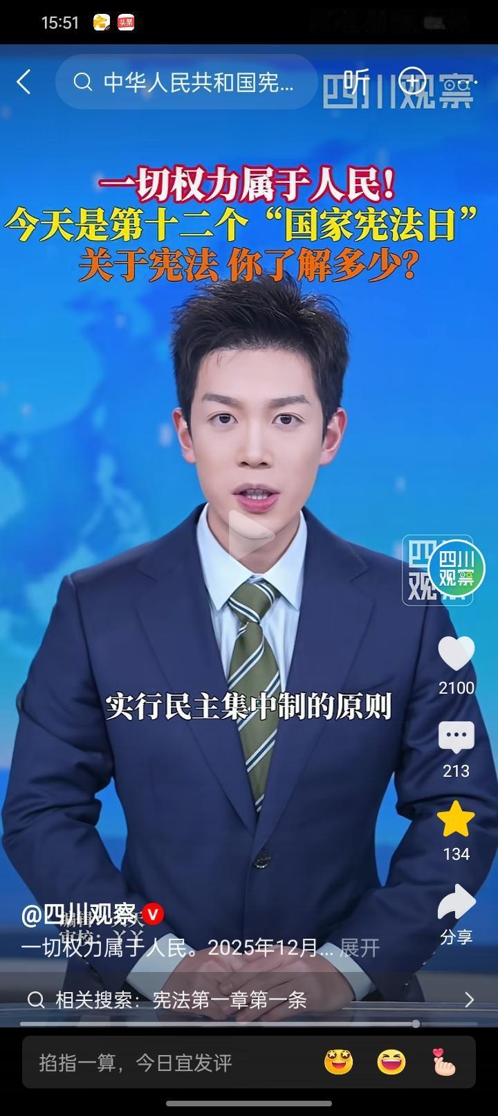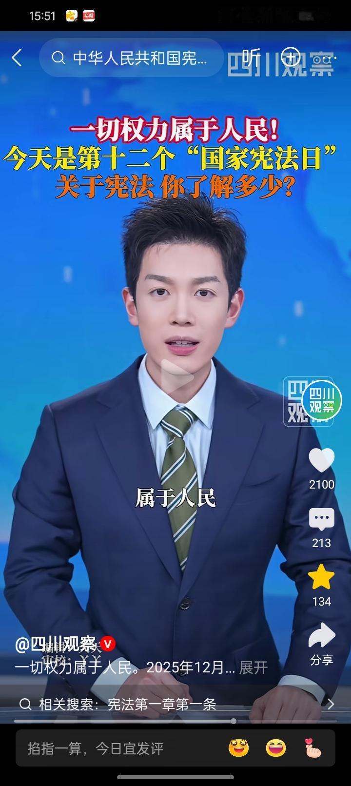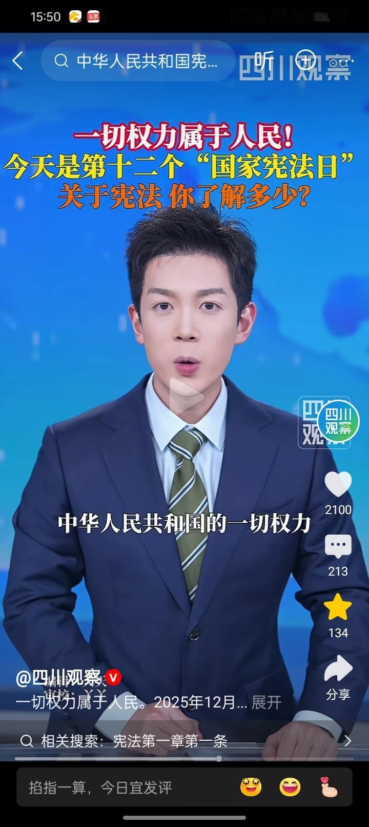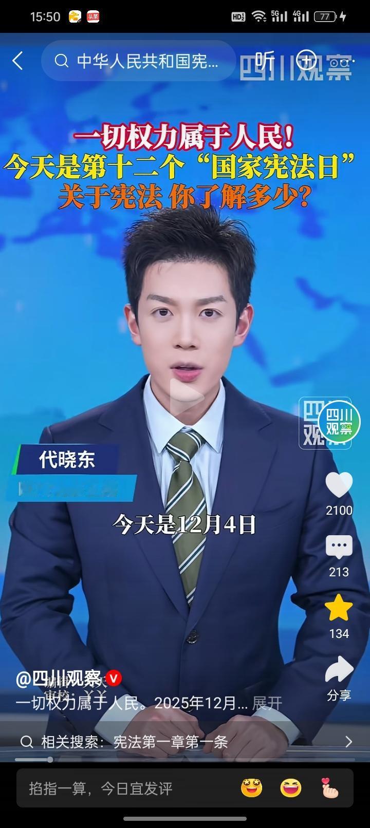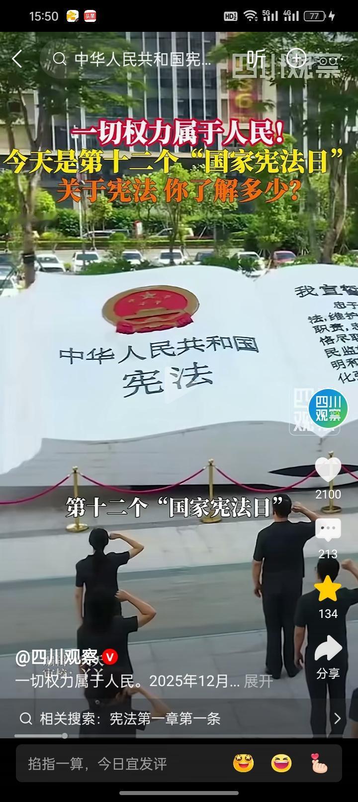 很多人其实不知道! 12月 4号,原来是一个特别重要的日子! 因为今天就是我们国家的第十二个国家宪法日!里面的第二条就明确规定,中华人民共和国的一切权力, 属于人民,属于全国14亿人共同所有! “国家宪法日”这样的日子!就应该好好地宣传,因为真的是太太重要了!
