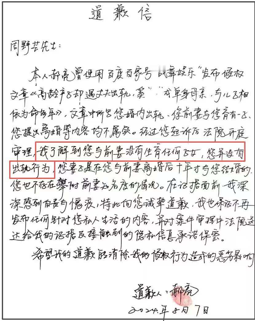 被冤枉30年的“渣男”,竟然是清白的!演员周野芒终于发声,澄清当年被前妻奚美娟冤枉“出轨抛妻弃子”的旧事,全网直接炸锅! 当年奚美娟坐月子期间,周野芒提出离婚,被扣上“抛妻弃子”帽子,奚美娟则成了“坚强单身母亲”。没想到,真相竟是奚美娟的孩子根本不是周野芒的!去年8月,造谣者公开道歉,周野芒终于洗清30年冤屈。 真的忍不住为周野芒点赞!30年默默承受骂名,为了给前妻体面,连事业都受影响。直到现在,他才敢站出来说公道话:“人总要学会在逆境里活下去。”这份胸襟,真的让人佩服! 周野芒和现任妻子丁克20多年,感情一直很好。去年晒出两人在高楼看黄浦江的照片,配文“爱在之巅,荡涤一切污泥浊水”,这操作简直太帅了! 现在真相大白,周野芒事业回暖,一年能拍好几部戏,商业演出也多了。奚美娟这边,人设崩塌,口碑一落千丈。 家人们,这事儿提醒我们:谣言猛于虎,真相永远不会缺席!你觉得周野芒这30年的忍耐值不值?