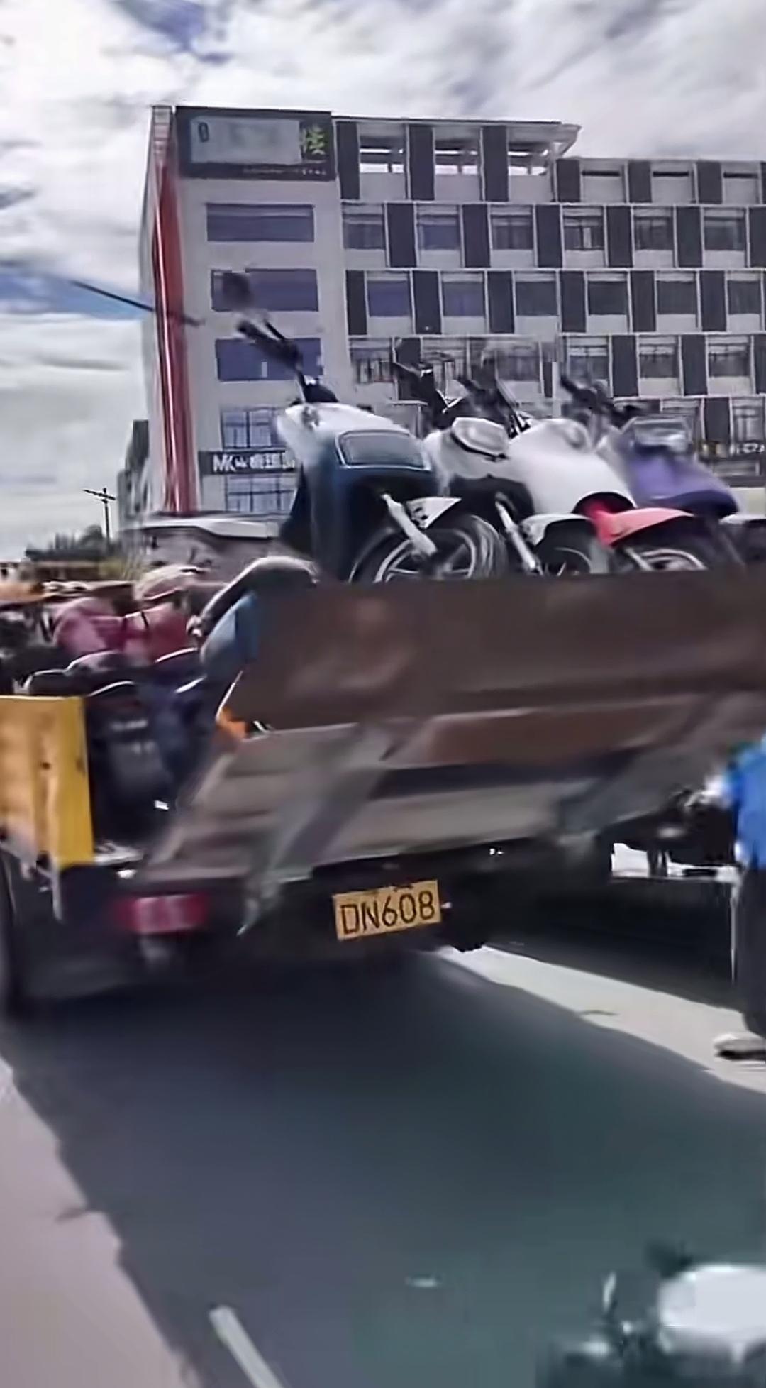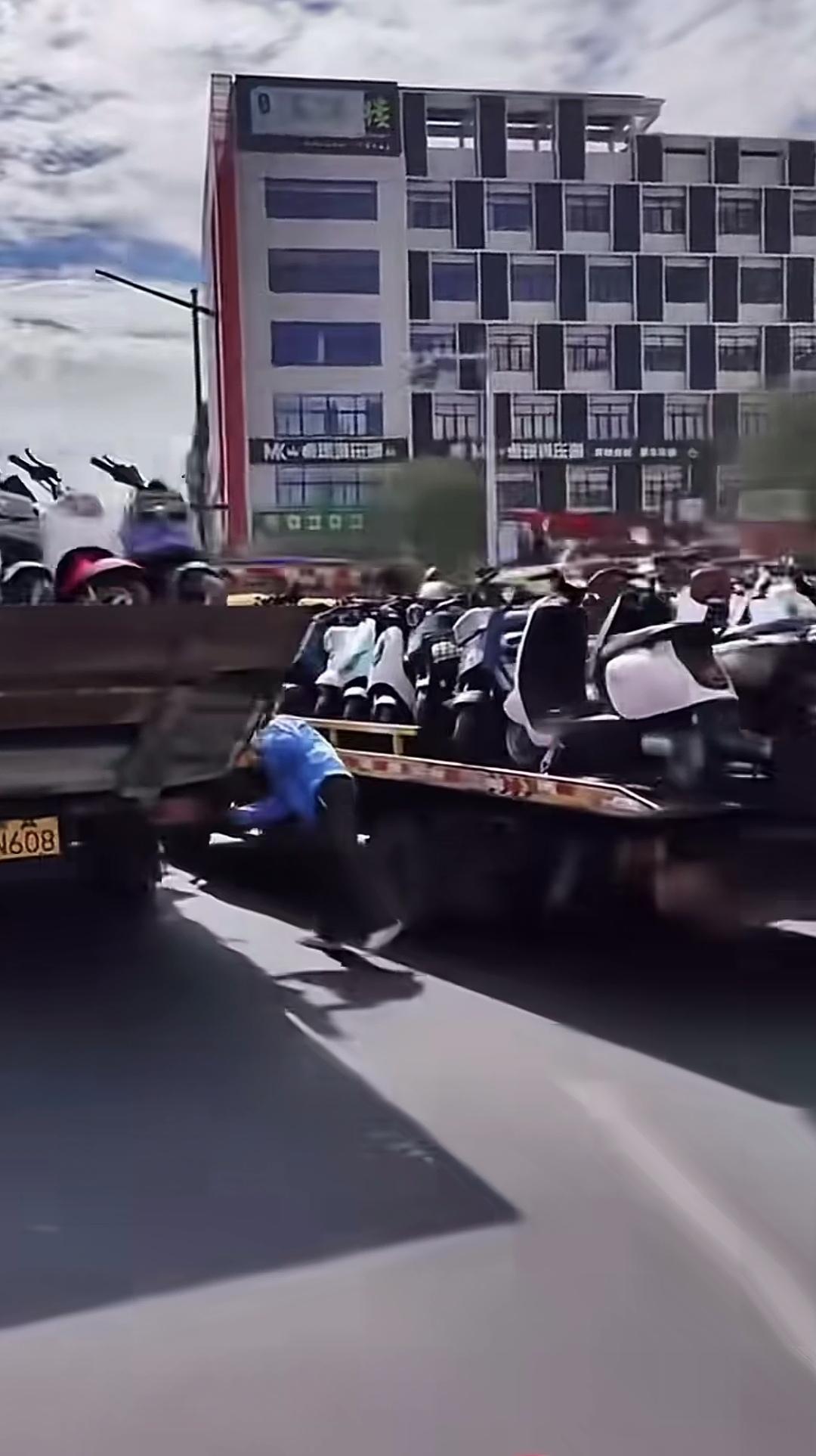 这么多电动车被装上车,这是怎么回事?是在给电动车挪位置,还是这些电动车是被查扣来