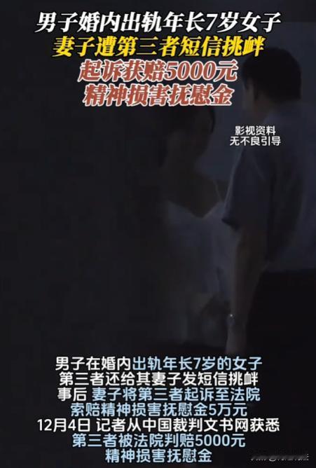 青海,男子任某婚内出轨年长7岁的陈某,陈某还发短信挑衅任某的妻子黄某,黄某不堪其扰,将陈某诉至法院,索赔精神损害抚慰金5万元,还要求返还夫妻共同财产及赔偿经济损失。最终法院这样判。 (来源:红星新闻、裁判文书网) 黄某和任某,于2019年结婚。 2023年9月,任某认识了年长自己7岁的陈某,两人发展成不正当男女关系。 任某不仅给陈某转账,还买首饰。 陈某明知任某已婚,却还多次发短信挑衅、辱骂、威胁黄某,把黄某逼得抑郁了。 黄某原本以为自己和任某能安安稳稳过一辈子,两人从结婚后,一直相互扶持。 可谁能想到,平静的生活被陈某的出现,彻底打破了。 2023年9月,任某在一次偶然的机会中认识了陈某。 陈某比任某大7岁,可这年龄差距并没有成为两人之间的阻碍,他们很快就打得火热,发展成了不正当的男女关系。 任某像是被迷了心窍,开始背着黄某给陈某转账, 一开始只是小额的,几十块、上百块,后来数额越来越大。 不仅如此,任某还经常给陈某买首饰,项链、手链,一件接着一件。 黄某一开始根本没察觉,直到有一次偶然看到任某的手机转账记录,才如梦初醒。 黄某质问任某怎么回事,任某一开始还支支吾吾不肯承认,后来在黄某的逼问下,才不得不坦白。 黄某伤心欲绝,她怎么也没想到,自己一心一意对待的丈夫,居然会做出这样的事。 更过分的是陈某,她明知任某已经结婚,却不仅没有收敛,反而更加嚣张。 她多次给黄某发短信,短信里的内容全是挑衅、辱骂和威胁。 她嘲笑黄某年老色衰,说任某根本不爱她,还威胁黄某要是敢管任某,就让她好看。 黄某本就性格比较内向,面对陈某的这些短信,她根本不知道该如何应对。 她每天看着那些恶毒的话语,心里越来越压抑,慢慢地,她开始吃不下饭,睡不着觉,整个人变得憔悴不堪,最后竟然抑郁了。 黄某的家人看到她这样,他们劝黄某不能再这样忍气吞声下去,一定要为自己讨个公道。 黄某在家人和朋友的支持下,起诉了陈某。要求陈某返还夫妻共同财产,还要求陈某赔偿精神损失费5万和2800元的经济损失。 不过后来,她经过考虑,放弃了2800元这部分的诉求。 陈某的行为实在太过分了,她不仅破坏别人的家庭,还对原配进行如此恶劣的挑衅和伤害。 难道她就不觉得自己这样做,是违法的吗? 根据民法典规定,夫妻在婚姻关系存续期间所得的财产,为夫妻共同财产,归夫妻共同所有,夫妻对共同财产有平等的处理权。 任某未经黄某同意,擅自将夫妻共同财产赠与陈某,这种行为违背了公序良俗原则。 公序良俗是指公共秩序和善良风俗,是社会一般道德准则在法律上的体现。 任某和陈某的不正当男女关系,本身就违背了道德准则。 任某将夫妻共同财产赠与陈某,更是损害了黄某对夫妻共同财产的合法权益。 所以,任某对陈某的赠与行为应当认定为无效。 黄某作为夫妻共同财产的合法共有人,有权要求陈某返还被赠与的财产。 本案中,由于证据只能证明任某赠与了陈某337.76元,所以,只能支持黄某要求返还这337.76元的诉求。 民法典规定,侵害自然人人身权益造成严重精神损害的,被侵权人有权请求精神损害赔偿。 陈某明知任某已婚,仍与其发展不正当关系,还多次发短信挑衅、辱骂、威胁黄某,导致黄某抑郁,给黄某造成了严重的精神损害。 所以,陈某应当承担精神损害赔偿责任。法院判决陈某赔偿黄某5000元精神损害抚慰金。 最终,法院认定: 任某给陈某的赠与无效,因证据只证明赠了337.76元,判陈某返还这笔钱。 还因陈某过错,判她赔黄某5000元精神损害抚慰金。