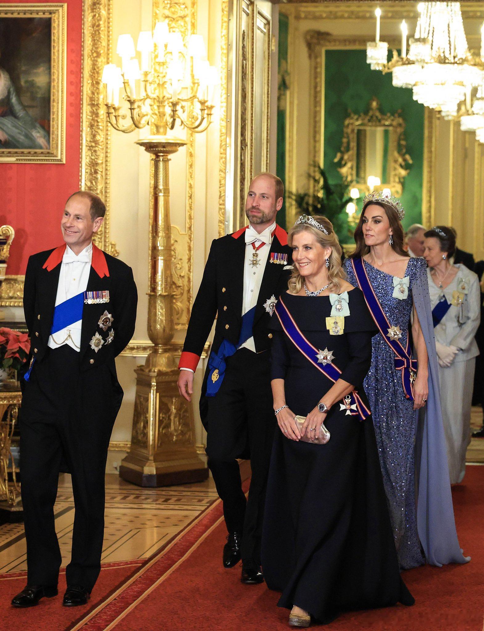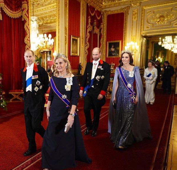 查尔斯三世国王 【news】德国总统来访,查尔斯三世夫妇在温莎堡举行国宴接待~卡米拉王后佩戴的是英国及爱尔兰女孩头冠和格雷维尔祖母绿项链! 格洛斯特公爵夫人佩戴着卡地亚印度王冠。马车接待环节,卡米拉王后戴着阿尔伯特亲王的蓝宝石胸针!这是德国阿尔伯特亲王在1840年婚礼前一天赠送给维多利亚女王的结婚礼物!