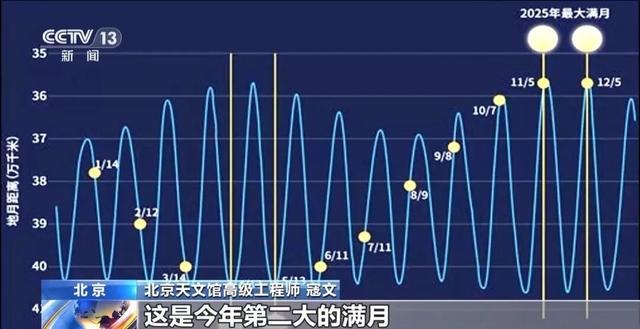一个月前的11月5日晚,也曾出现过一次“超级月亮”,是2025年满月中距地球最近的一次,被定义为年度最大超级月亮。