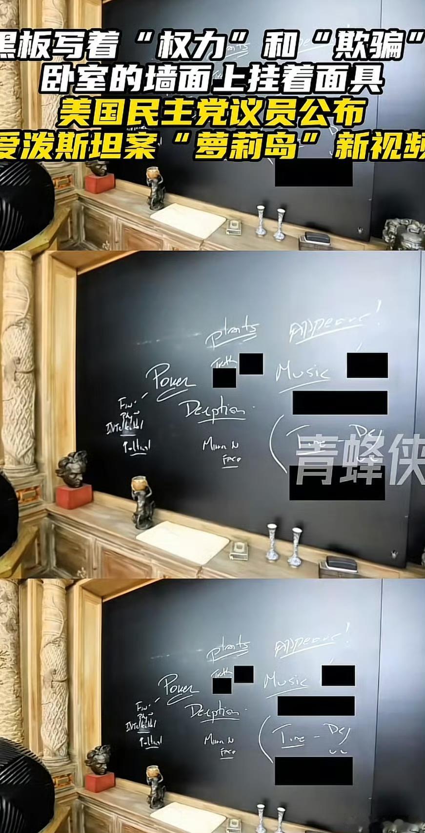 爱泼斯坦萝莉岛豪宅内部首曝!诡异面具墙配牙科椅,细节让人脊背发凉 12月3日,美国众议院公布的萝莉岛内部影像,直接把这座“罪恶岛屿”的阴暗面摊在了阳光下!奢华的加勒比海度假别墅里,居然藏着一面挂满诡异面具的墙,旁边还摆着一把牙科椅,每一处细节都透着让人窒息的诡异 。 这些面具造型各异,有中世纪骑士盔也有夸张的小丑脸,心理学专家说,这是爱泼斯坦用来摧毁受害者尊严的工具。更可怕的是,那把牙科椅根本不是用来治病的——爱泼斯坦的女友是牙医,他常以看牙为借口诱骗少女,椅身的锁扣设计就是为了限制人身自由。 书房里的黑板更耐人寻味,上面写着“权力”“欺骗”“阴谋”,座机的快速拨号键标着权贵名字,女性名字却全被涂黑。这座看似光鲜的私人岛屿,终究成了权贵遮羞布下的犯罪现场,而这些面具和牙科椅,就是最无声的罪证!