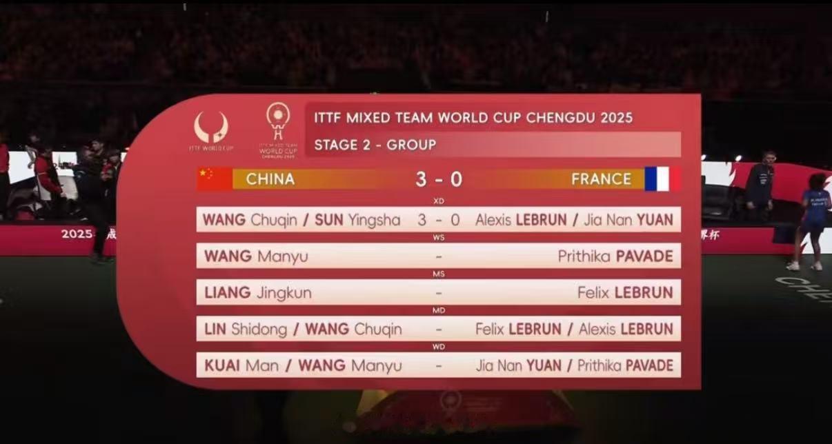 王楚钦孙颖莎vsA勒布伦袁嘉楠莎头组合以11-7逆转、12-10险胜、11-5稳收,默契拉满力克法国强档,为中国队抢占先机!王楚钦孙颖莎3比0勒布伦袁嘉楠