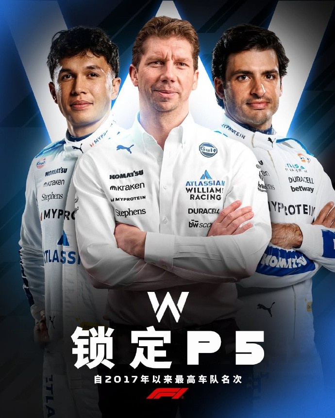 锁定车队积分榜第五名,这也是威廉姆斯自2017赛季以来在季末取得的最高车队排名。