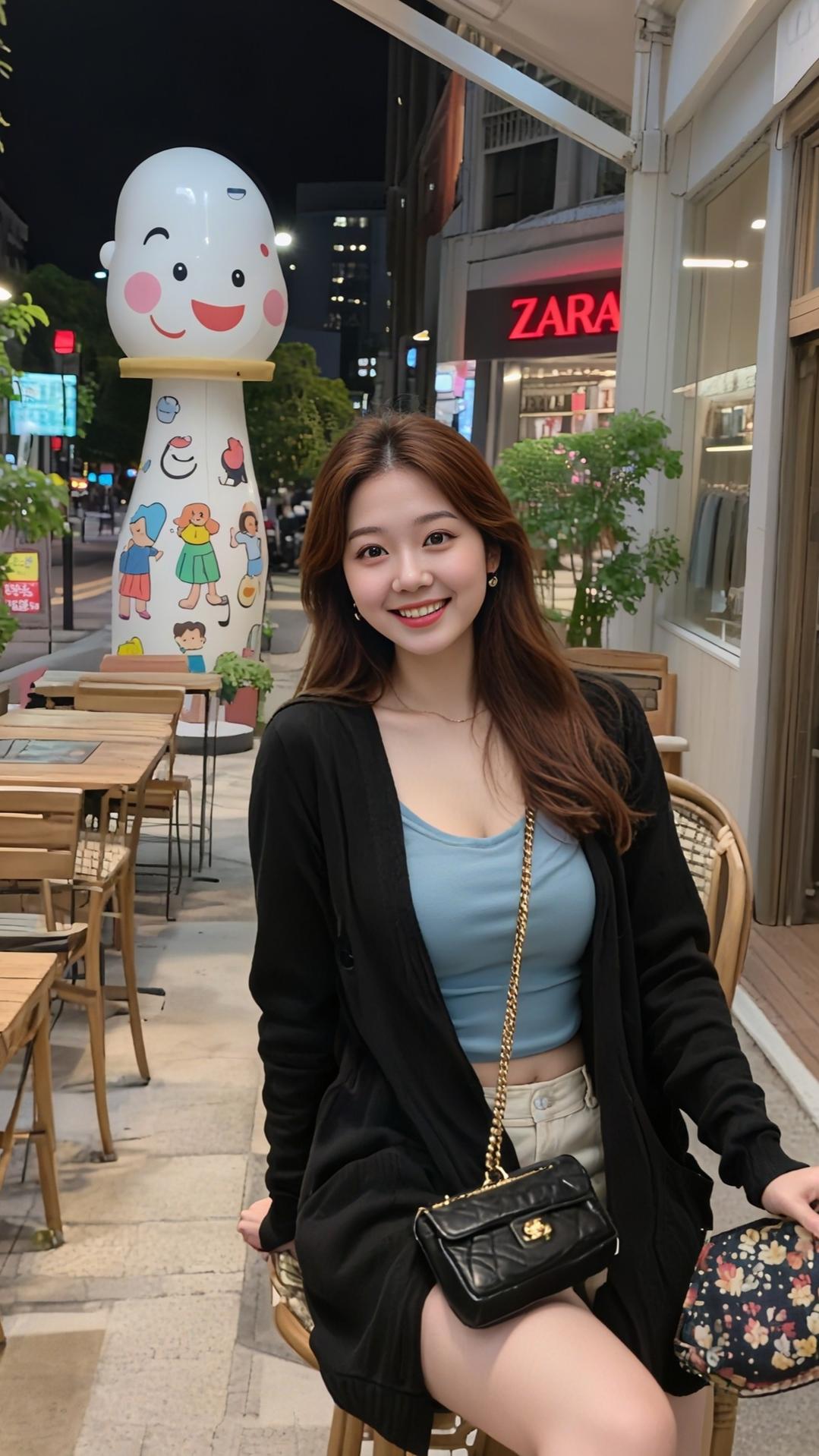 夜晚的咖啡馆,甜美少女与萌宠相伴,享受宁静时光。🌃💕🐻