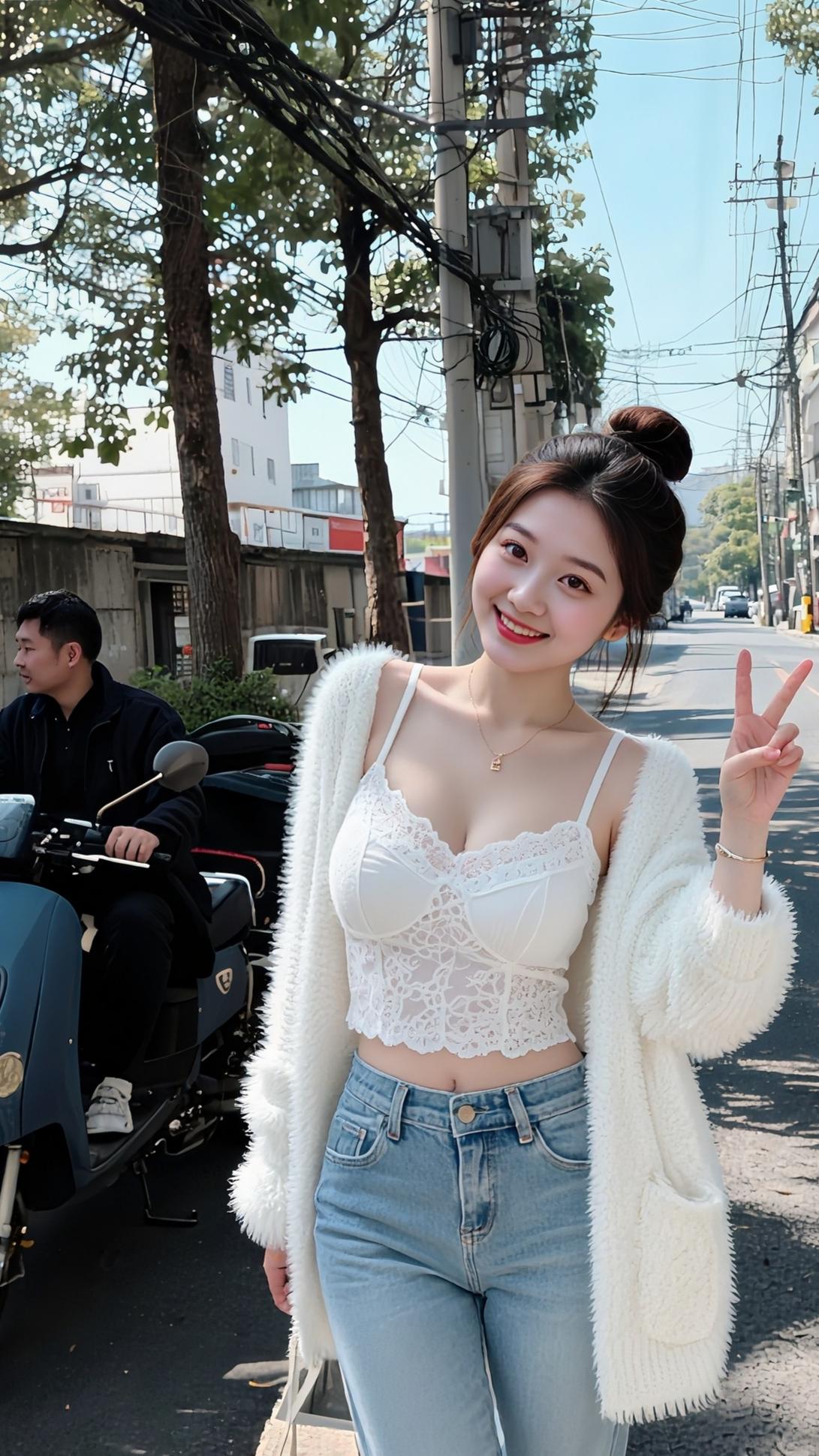 阳光明媚的一天,元气满满的小仙女在街头摆POSE🌞💃🏻
