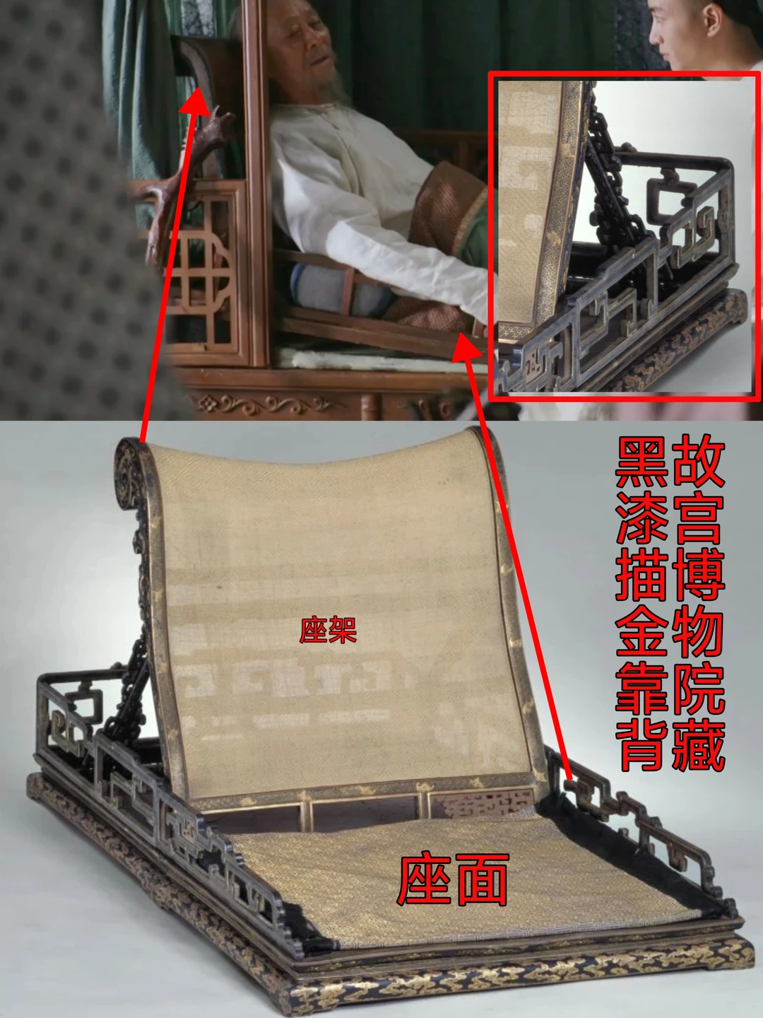 1⃣️现存于世的实物只有一件,为故宫博物院所藏的黑漆描金靠背。