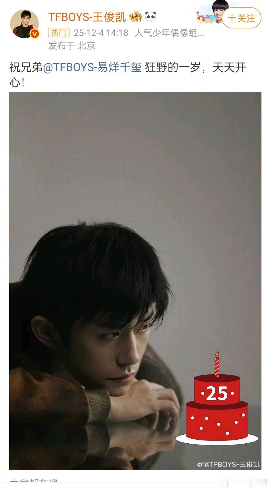 王源王俊凯为易烊千玺庆生了王俊凯王源为易烊千玺庆生了 哇撒!!是三小只的友谊啊!!!易烊千玺