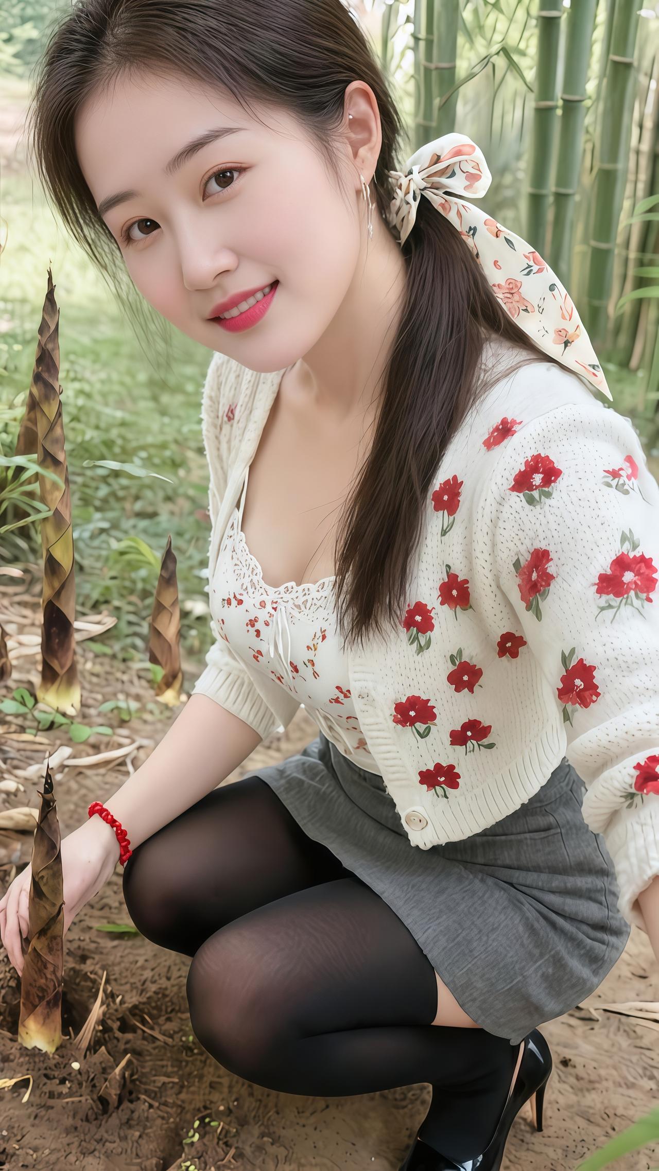 山里姑娘 清纯甜美 挖竹笋 山里风景