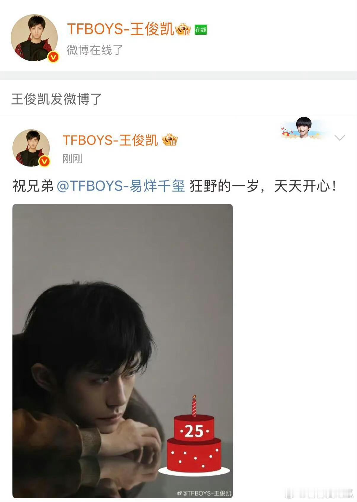 王源王俊凯为易烊千玺庆生三小只变三大只了