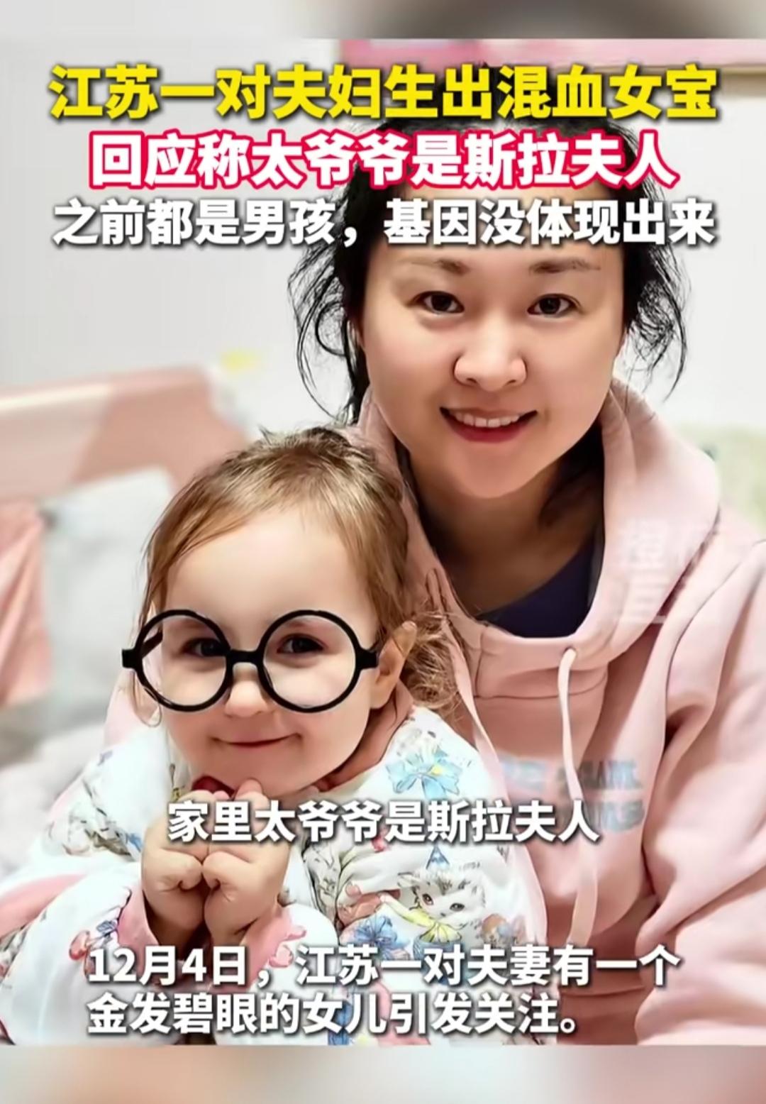 谁见过这么神奇的事儿?江苏一对普通中国夫妻,生的女儿竟是金发碧眼、卷发高鼻,一岁时夫妻俩差点去医院做亲子鉴定,生怕抱错了娃! 直到家里长辈提起往事,众人才恍然大悟:孩子的太爷爷是纯正斯拉夫人。之前家族里全是男孩,血脉特征一直没显现,偏偏在这姑娘身上,把隔代基因全给“激活”了。 家里叔叔大伯都是标准中国长相,就这小姑娘独独遗传了太爷爷的异域特征,网友笑称“这是基因开盲盒开出了隐藏款”。其实这哪是意外,是家族血脉跨越几代的温柔回响。 生命的奇妙就在于此,那些沉睡在基因里的故事,说不定哪天就会以惊喜的方式出现。毕竟每个独一无二的生命,都藏着家族代代相传的印记。