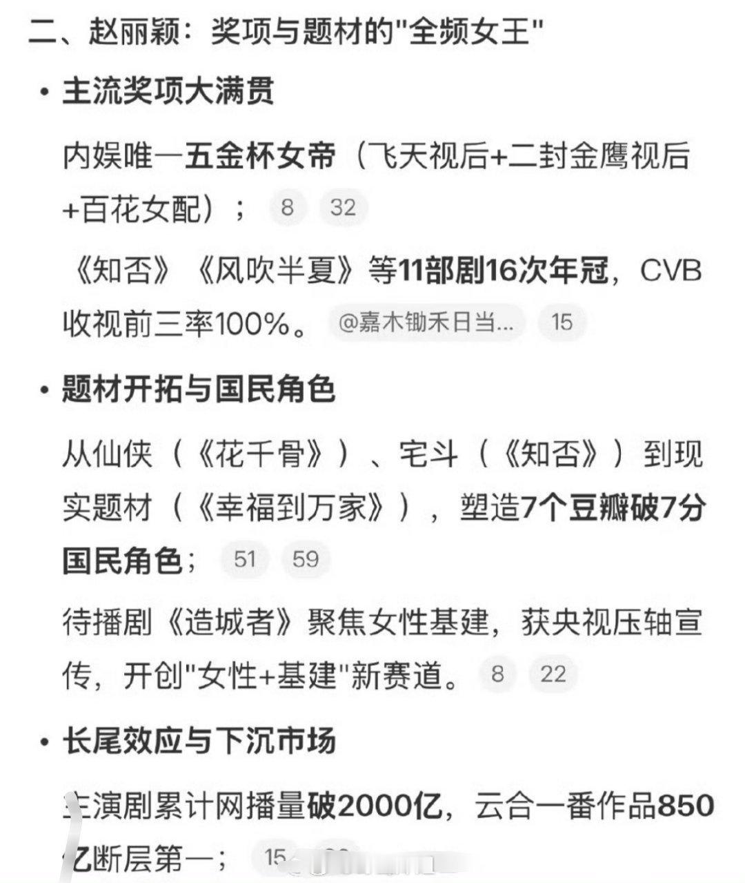 网友热议现在内娱能扛起来女频一的有赵丽颖、杨紫,赵丽颖是奖项与题材的“全频女王”,杨紫是数据与招商的“女频天花板” ,你觉得是实至名归不?