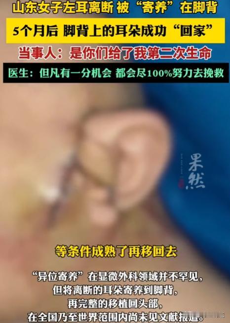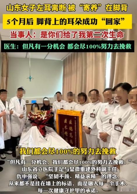 山东,孙女士遭遇意外,左耳与头部完全脱离,头部皮肤大面积撕脱,颅骨都暴露在外。本以为后半生要顶着残缺面容生活,没想到医生提出大胆的方案,把她的左耳寄养在脚背上,五个月后又成功移回头部。网友们看到后纷纷惊呼,直问这是哪里的牛人医生。这究竟是怎样一个神奇的移花接木的技术过程呢? 孙女士,原本是个大美女,可一场意外,她的左耳和头部彻底断开,头部皮肤大面积撕脱,颅骨都露了出来。 清醒后的她看着自己受损的脸,以为后半生只能这样了。 好在医生团队带来了转机,他们经过反复研讨,决定把孙女士的左耳寄养在脚背上。 这手术难度,那可不是一般的高。 耳朵离开头部,要活下来,就得精准连接比发丝还细的血管,要是连接不好,耳朵根本无法存活。 而且,这脚背和头部环境差异那么大,能不能适应也是个大问题。 孙女士听到这个方案,心里也很纠结。 担心手术失败,耳朵没了,脸也毁了,可又期待着能恢复原样,重新过上正常生活。 但她还是选择相信医生,全程严格遵医嘱,小心翼翼保护脚背上的耳朵。 每天走路都提心吊胆,生怕碰到脚背上的耳朵,晚上睡觉也不敢乱动,就怕压坏了。 这期间,也有不少质疑声。 有人觉得这手术太冒险,万一失败了,孙女士可就遭大罪了。 还有人怀疑医生的技术,觉得这根本就是不可能完成的任务。 但医生们不为所动,他们凭借着专业的知识和丰富的经验,坚定地推进手术。 五个月后,奇迹真的发生了。 耳朵在脚背养得很好,医生成功把它接回头部原位。 当孙女士看到完整的自己,她不敢相信,自己真的恢复了原样。 亲朋好友看到她,也都惊喜不已,纷纷夸赞医生厉害。 这事在网上也引起了轩然大波,网友们惊叹不已,纷纷打听是哪个医院的团队。 后来得知,是山东第一医科大学附属省立医院,大家纷纷点赞。 这手术成功了,耳朵寄养脚背再回植,到底合不合法呢? 根据《民法典》第一千二百一十九条规定,医务人员在诊疗活动中应当向患者说明病情和医疗措施。需要实施手术、特殊检查、特殊治疗的,医务人员应当及时向患者具体说明医疗风险、替代医疗方案等情况,并取得其明确同意;不能或者不宜向患者说明的,应当向患者的近亲属说明,并取得其明确同意。 在这起事件里,医院进行耳朵寄养脚背再回植这种特殊治疗,就得提前向孙女士说明手术风险、方案等情况。 要是医院没做到这点,没取得孙女士明确同意就进行手术,那就是侵权行为,要承担相应的法律责任。 如果孙女士因为不知道手术风险,术后出现了严重后果,那医院就得为没履行告知义务负责。 根据《基本医疗卫生与健康促进法》第四十三条规定,对医疗卫生技术实行分类管理,对安全风险高、技术难度大的医疗卫生技术实行严格准入管理。 现在医疗技术发展快,各种新疗法不断涌现。 山东第一医科大学附属省立医院因为严格遵守法律规定,提前向孙女士详细说明了手术情况,取得了她的同意,并且该技术经过严格审批,手术成功帮助孙女士恢复容貌。 医院和医生要严格遵守法律规定,尊重患者的知情权和选择权,不能为了利益冒险行事。 患者也要增强法律意识,在接受治疗前,了解清楚手术风险和方案,保护好自己的合法权益。 (来源:四川观察 2025年12月4日报道)