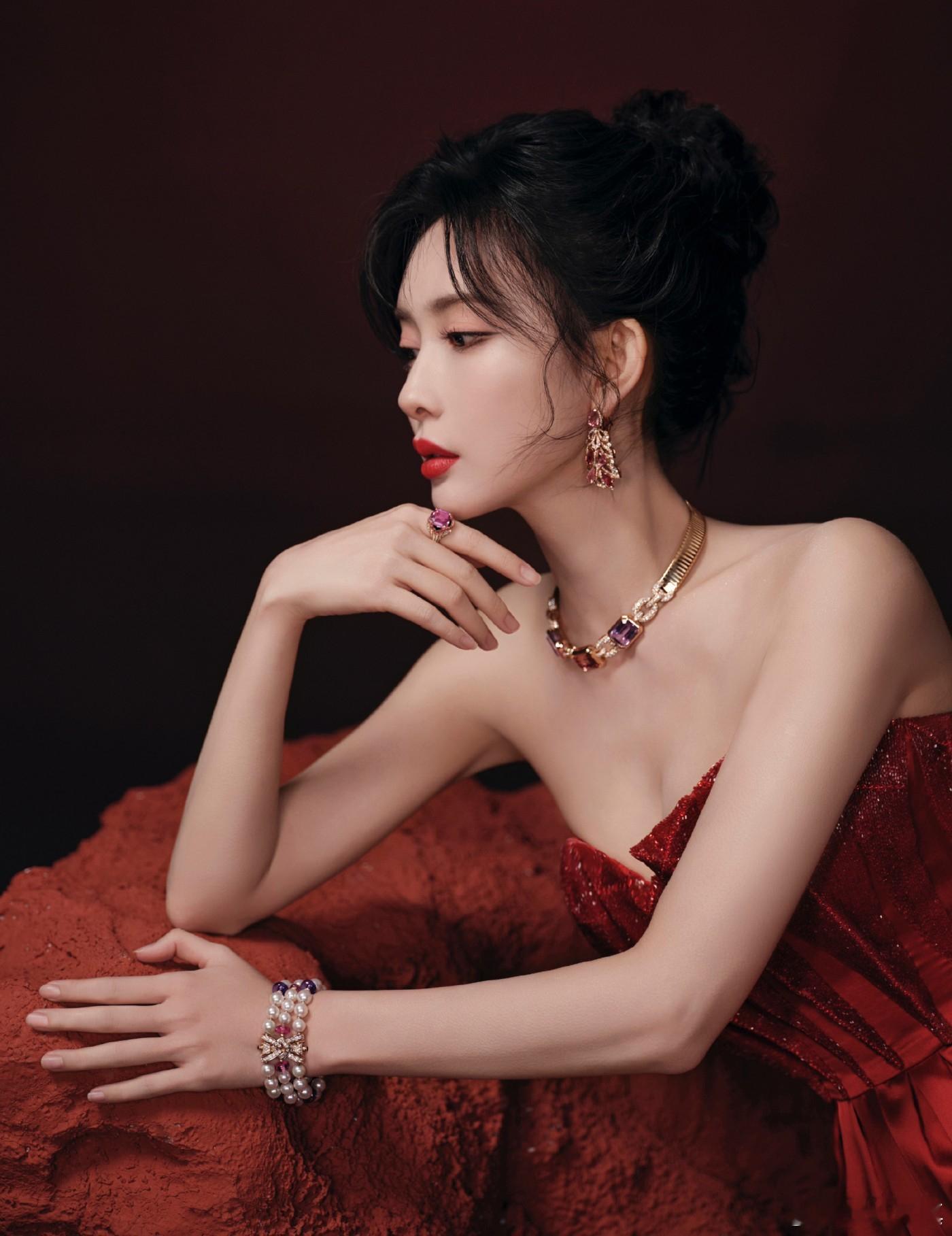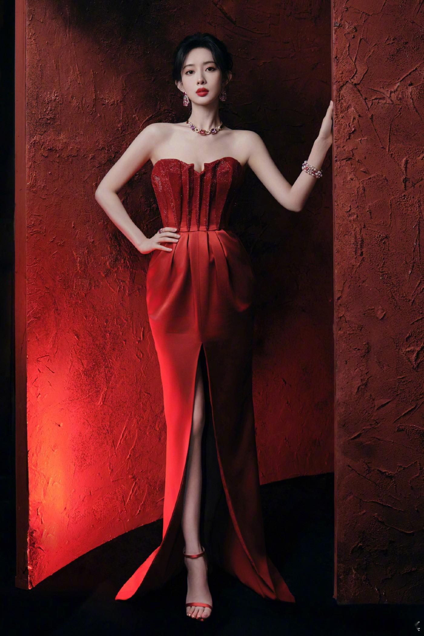 孟子义高考512分孟子义亮钻开叉红裙亮相BVLGARI宝格丽活动