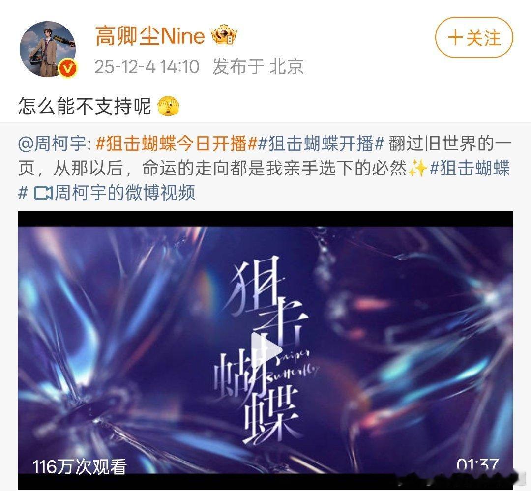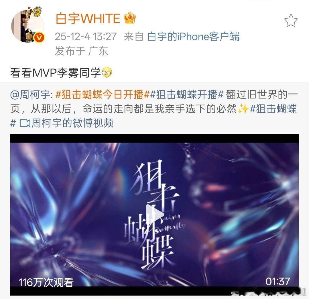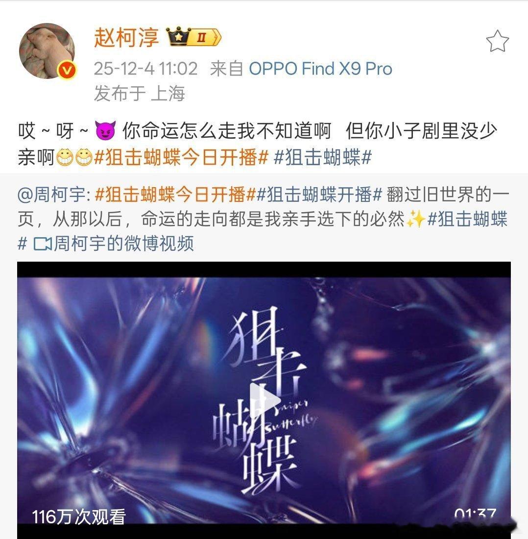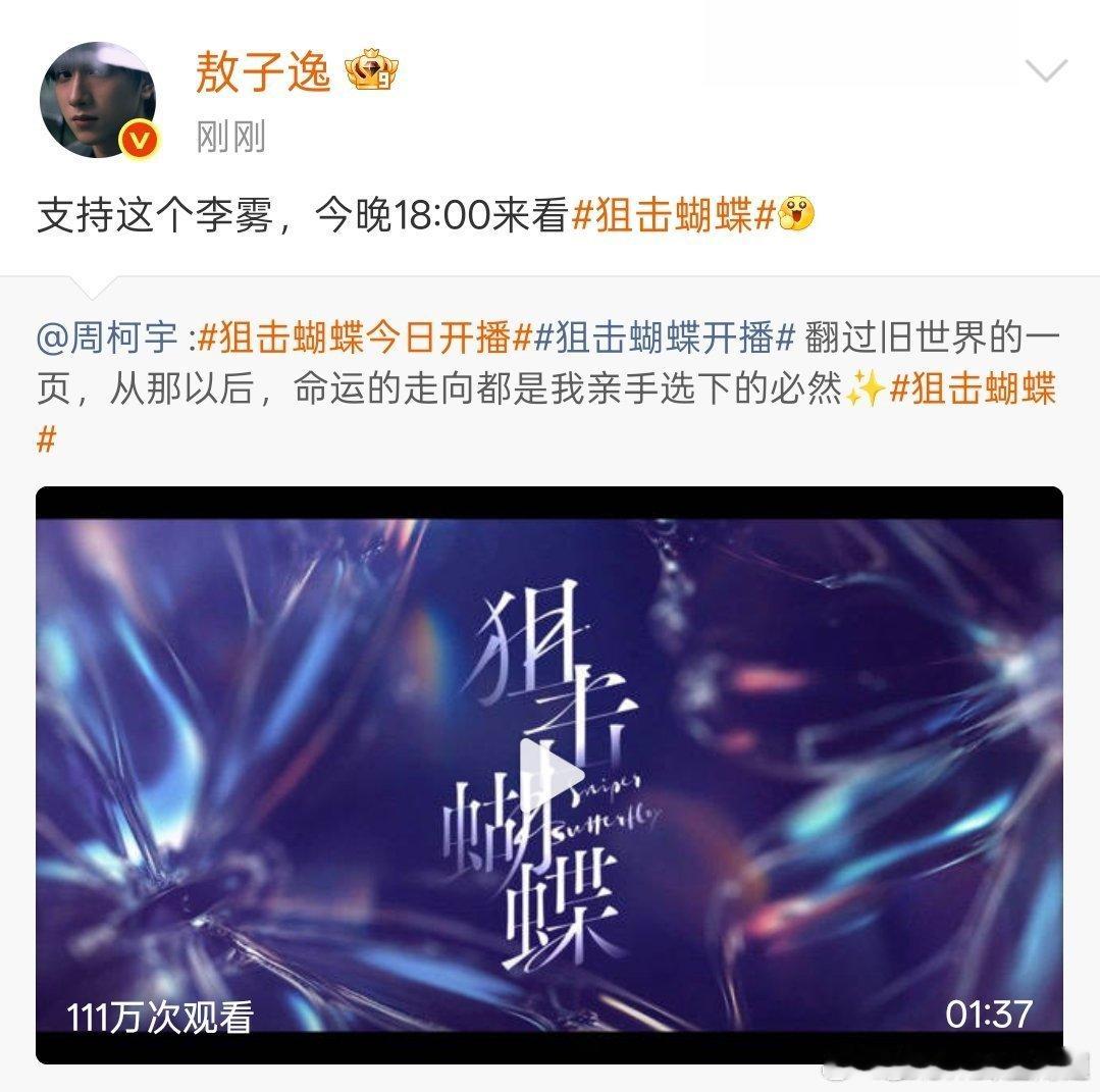 陈妍希周柯宇圈内人缘陈妍希周柯宇娱乐圈人缘救命!《狙击蝴蝶》的明星打 call 阵容也太豪华了,果然陈妍希周柯宇在圈里的口碑超好 狙击蝴蝶云包场